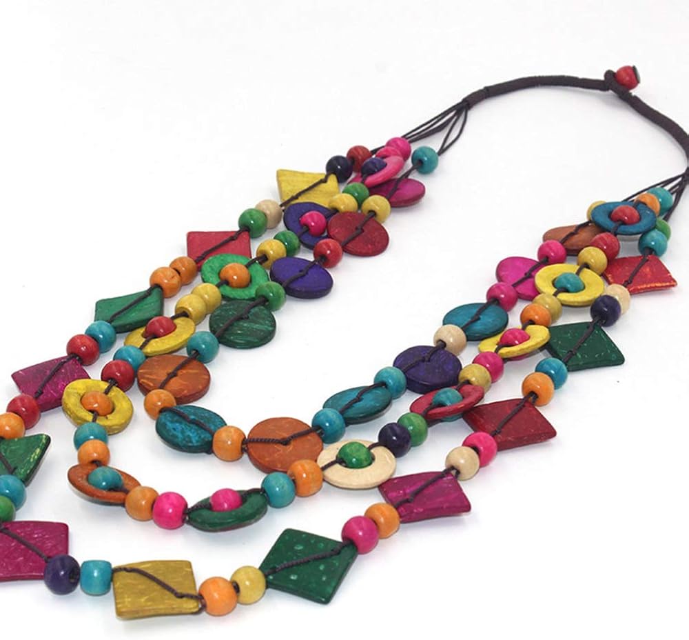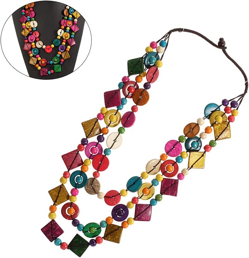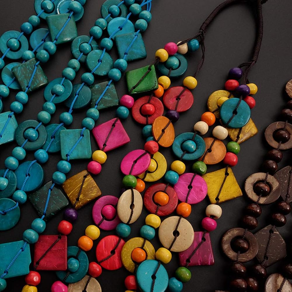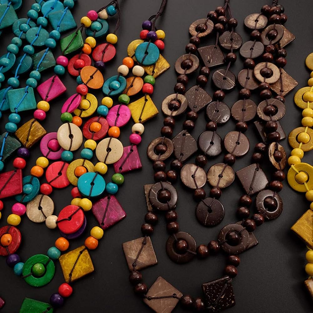 🔥This Chunky Collar Novelty Jeweley for Women Costume Handmade Party Daily Jewelry is made with natural wood beads and shells for durability.