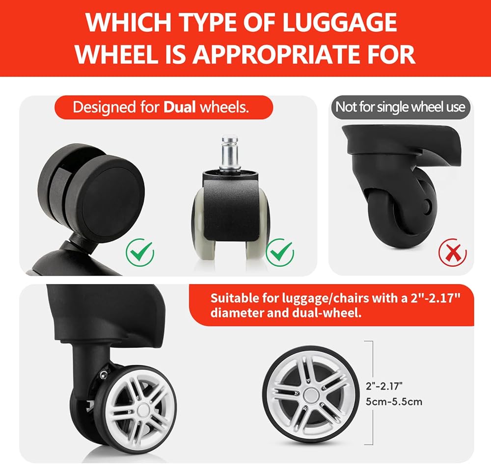 【معلومات مهمة】يوفر جانبا أغطية عجلات الأمتعة لدينا، أحدهما أرفع للجزء الداخلي من عجلات حقيبة السفر، والآخر أكثر سمكًا للجزء الخارجي من عجلات حقيبة السفر، ملاءمة أكثر تفصيلًا. تم تصميم هذه الأغطية خصيصًا لحقائب السفر ذات 8 عجلات دوارة. قبل الشراء، يرجى التأكد من أن حقيبتك تحتوي على عجلات مزدوجة وأن حجم العجلة ومسافة العجلة إلى المحور وأبعاد الرفارف تتوافق مع متطلبات الحجم الموضحة في صورة منتجنا الرئيسي.