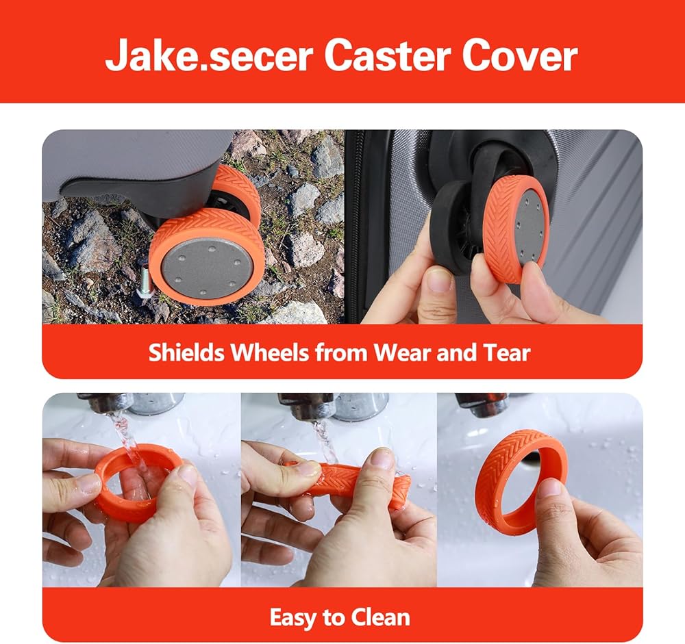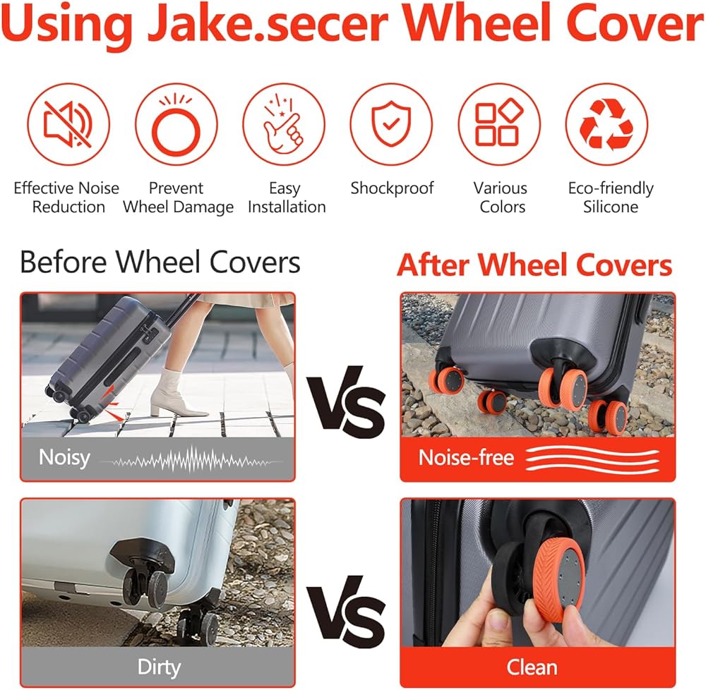 【متعددة الاستخدامات وصديقة للبيئة】يمكن تنظيف أغطية عجلات حقيبة السفر المصنوعة من السيليكون الصديقة للبيئة من Jake.secer بسهولة بالماء. استخدمها ليس فقط للسفر ولكن أيضًا على كراسي منزلك ومكتبك للاستمتاع ببيئة ضوضاء هادئة ومُعاد استخدامها.