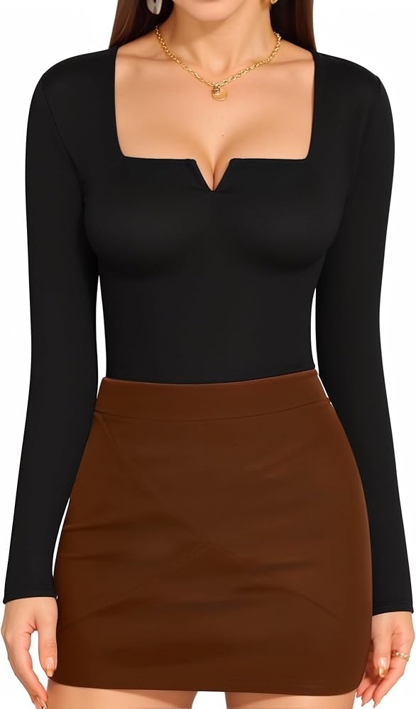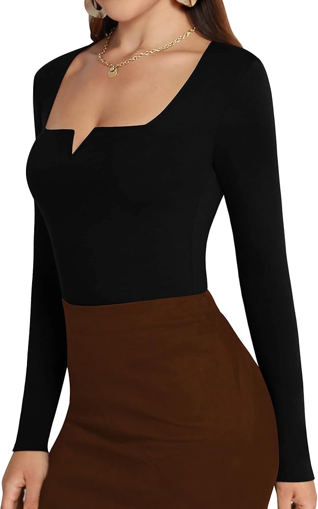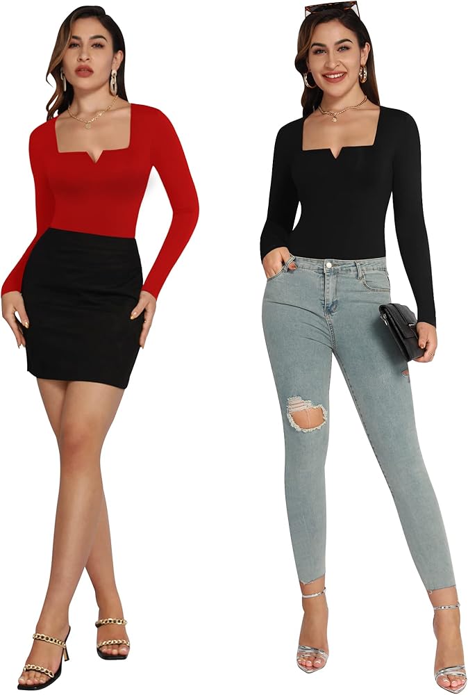 التصميم: قمصان طويلة الأكمام للسيدات تتميز بخط عنق مربع عصري/ رقبة على شكل حرف V، وأكمام طويلة، إنها لطيفة للغاية ولها مقاس جذاب.