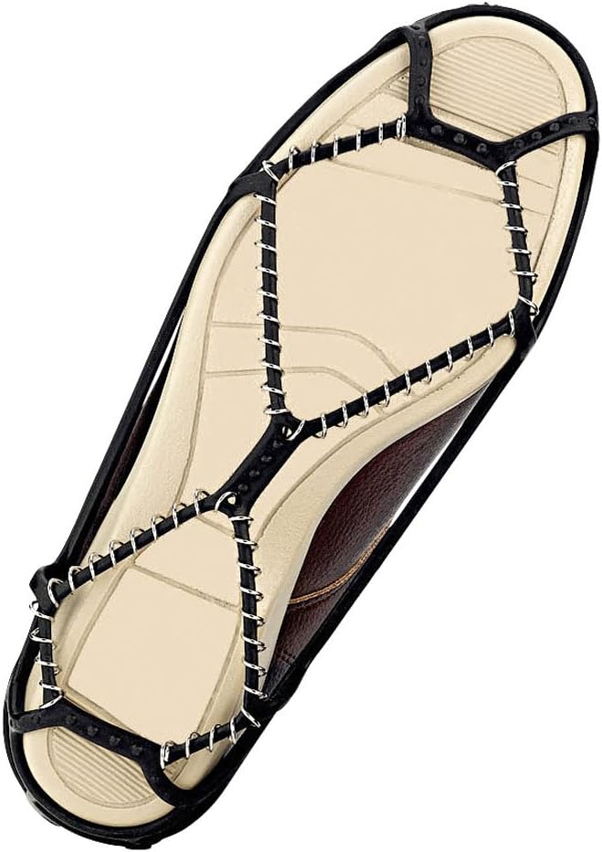 Walk Safely on Ice or Snow Don't worry about slipping and falling on snow or ice this winter. Simply slip Winter Trax over your shoes or boots for safe sure footing. Each lightweight polyelastomer tread has high abrasion steel coils to give you hundreds of biting edges on packed snow and ice. One pair. One size fits most women and men.