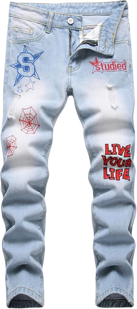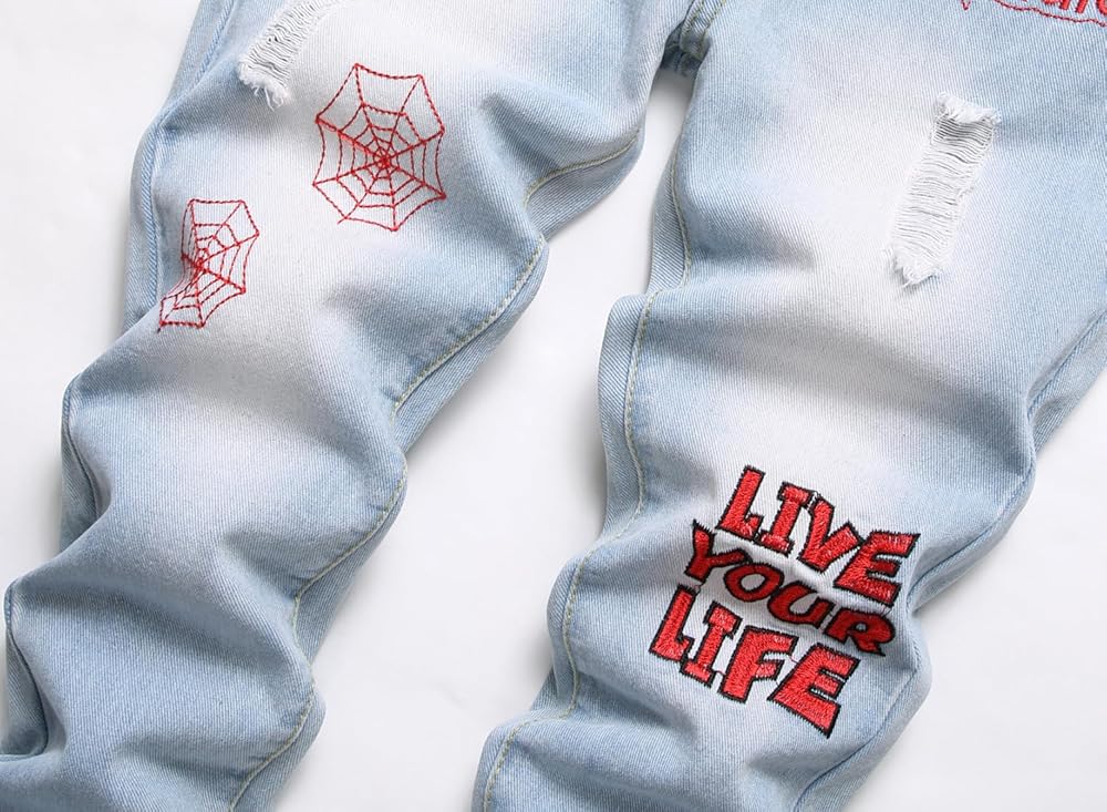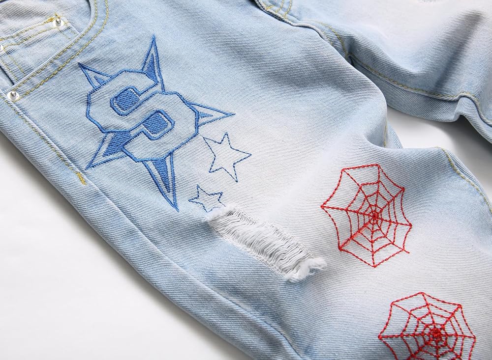 الجينز الممزق المطرز مثالي للارتداء مع مجموعة متنوعة من القمصان الكاجوال أو قمصان الشارع، مثل السترات والقمصان الثقيلة والمعاطف والقمصان والأحذية الكاجوال أو الأحذية الرياضية، وما إلى ذلك، مناسب لجميع المواسم