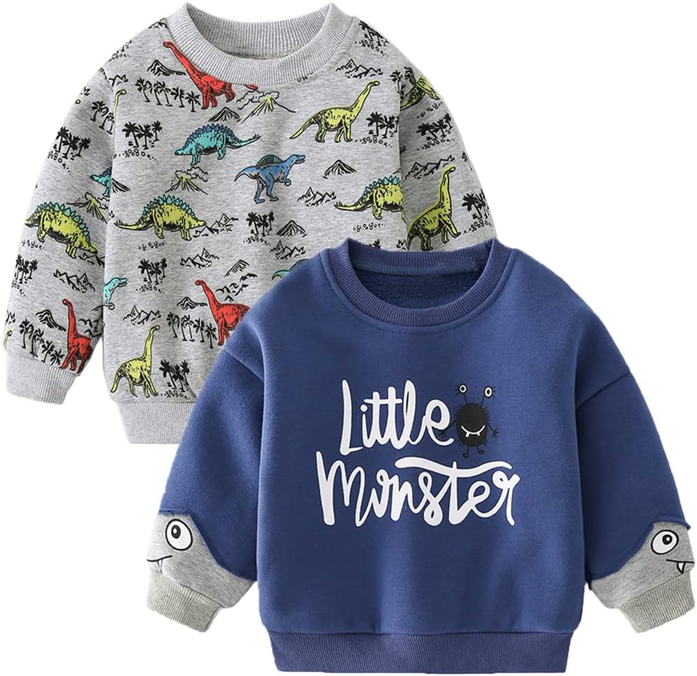 Dinosaurs print fleece sweatshirts pullover sweaters for boys 2-6 years old,will make your boys cute and warm in the Winter !