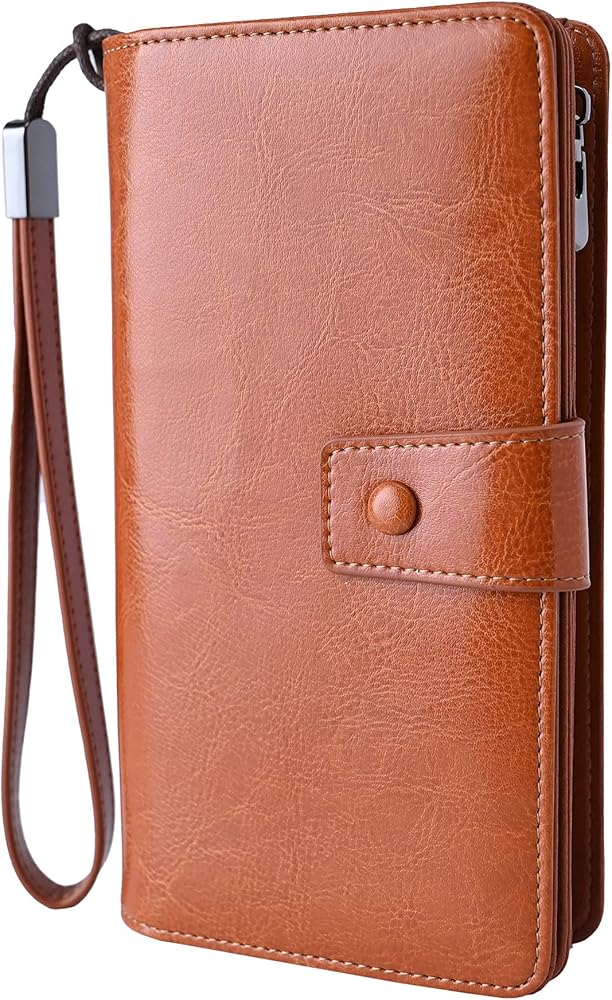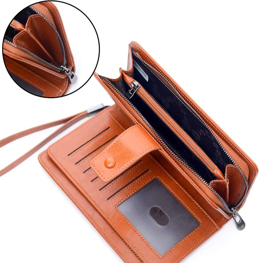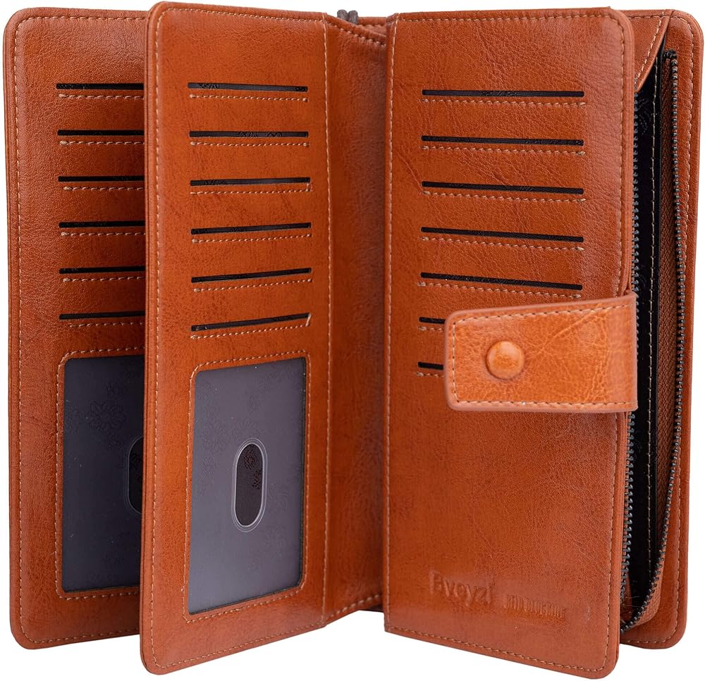 محافظ نسائية ذات سعة كبيرة، 23 فتحة لبطاقة الائتمان، محافظ جلدية بحجب RFID مع سحاب (بني)
