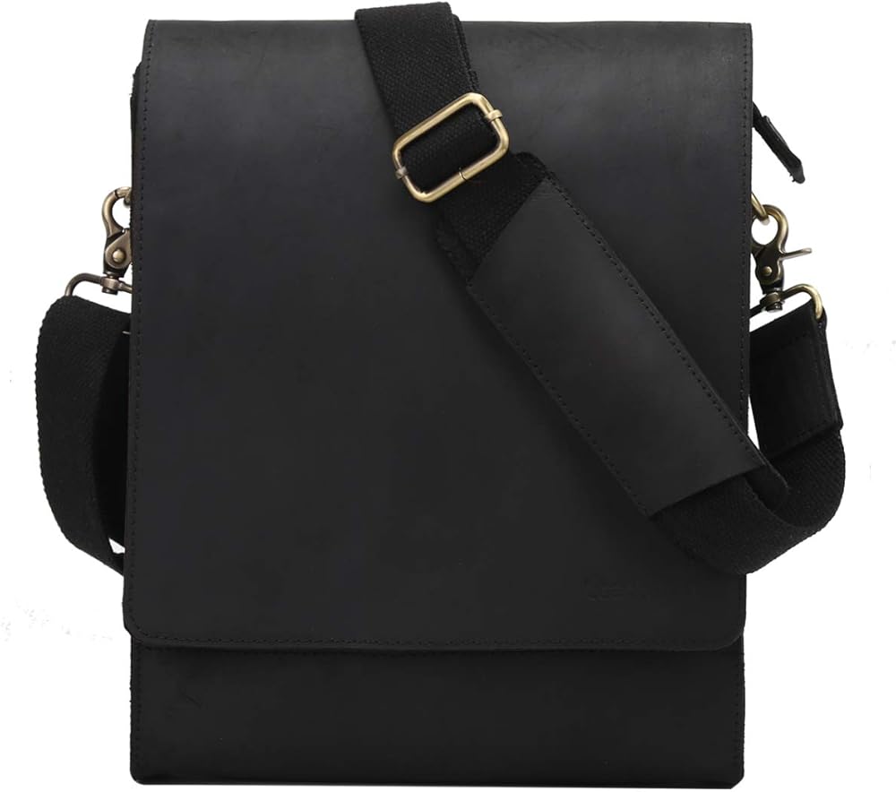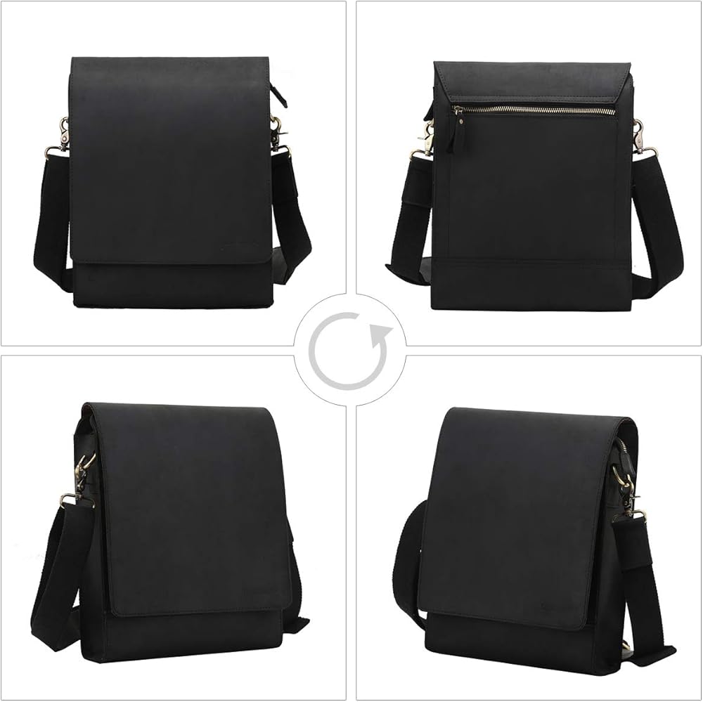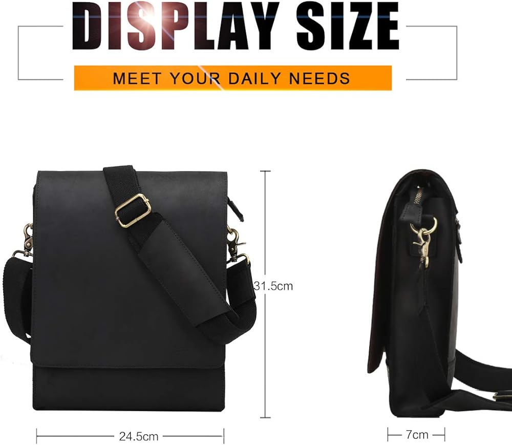 المواد: مصنوعة من جلد أصلي 100% ومبطنة بقماش عالي الجودة، تم تصميم حقيبة المراسلين هذه ذات المظهر العتيق للرجال مع غطاء قلاب وإغلاق سريع مخفي لسهولة الوصول. الجلد الحقيقي ناعم ومريح عند اللمس. تصميم بسيط وذكي. الحجم: 12.09*2.73*9.56 بوصة (مثالي للكتب والأجهزة اللوحية والهاتف والمحفظة وما إلى ذلك). الوزن: 0.82 كجم.