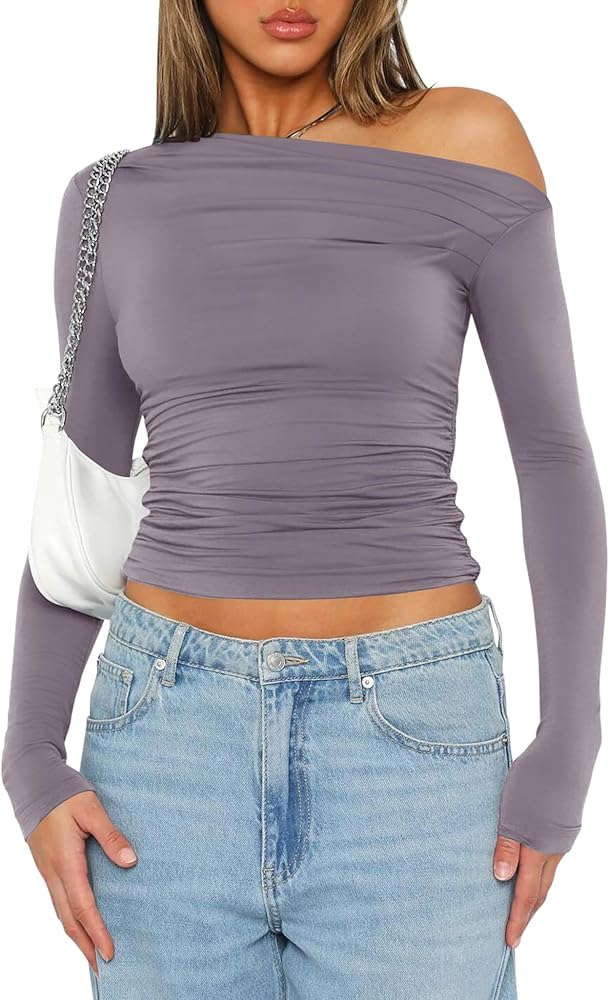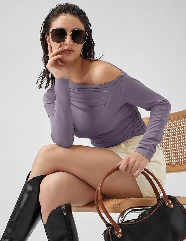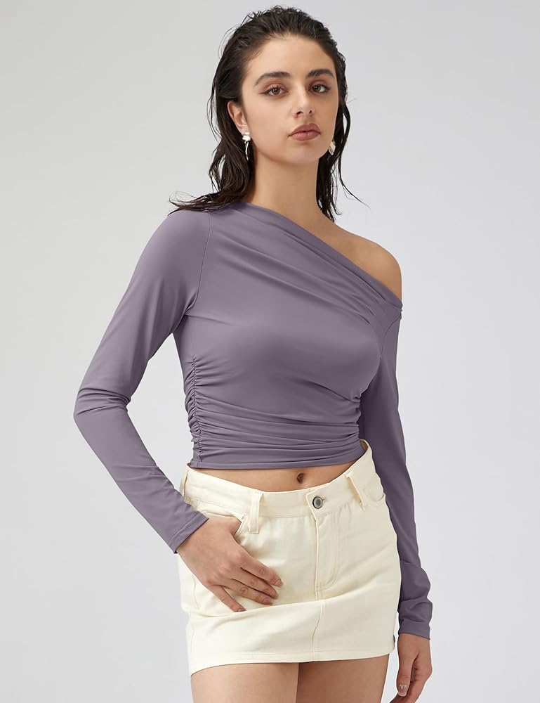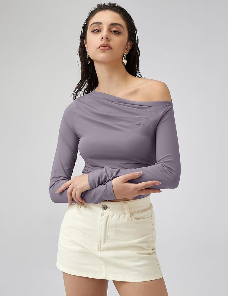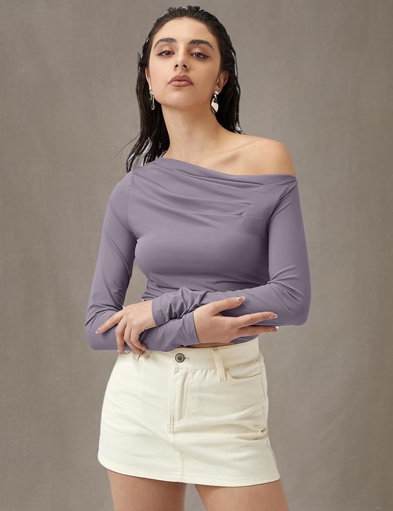 طرق مختلفة للارتداء: يمكن لهذا القميص ذو الكتف الواحد ذو الأكمام الطويلة أن يكشف كتفًا واحدًا فقط أو كل كتفيك، حسب تفضيلاتك.