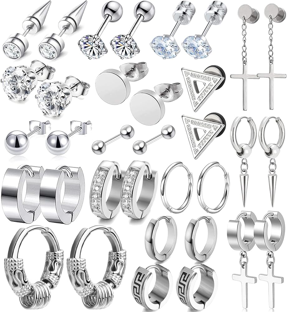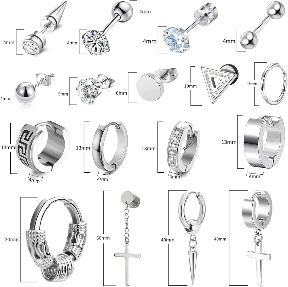 تغليف محسّن: يمكنك الحصول على 17 زوجًا من الأقراط السوداء للرجال جميعها مخزنة بشكل جميل وأنيق في صندوق تذكاري. الانهيار هو 8 أزواج من الأزرار ذات التصميم المختلف - حتى أن بعضها حصل على قطعة تشيكوسلوفاكيا الجليدية. تتضمن أيضًا 6 أزواج من الأطواق الدائرية و3 أزواج من الأطواق المتدلية التي تتأرجح.
