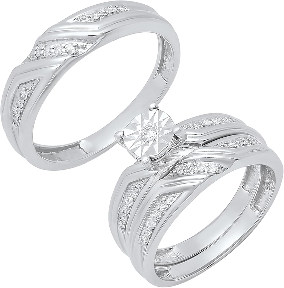📋【SPECIFICATIONS】 - 925 Sterling Silver 🔹 White Diamond Color: I-J | Clarity: I2-I3 🔹 White Diamond Total Weight: 0.25 Carat 🔹 Women's Ring Set Width: 8.50mm (0.33 Inch) & Men's Ring Width: 5.00mm (0.20 Inch) 🔹 Model Number: K5394-9-12