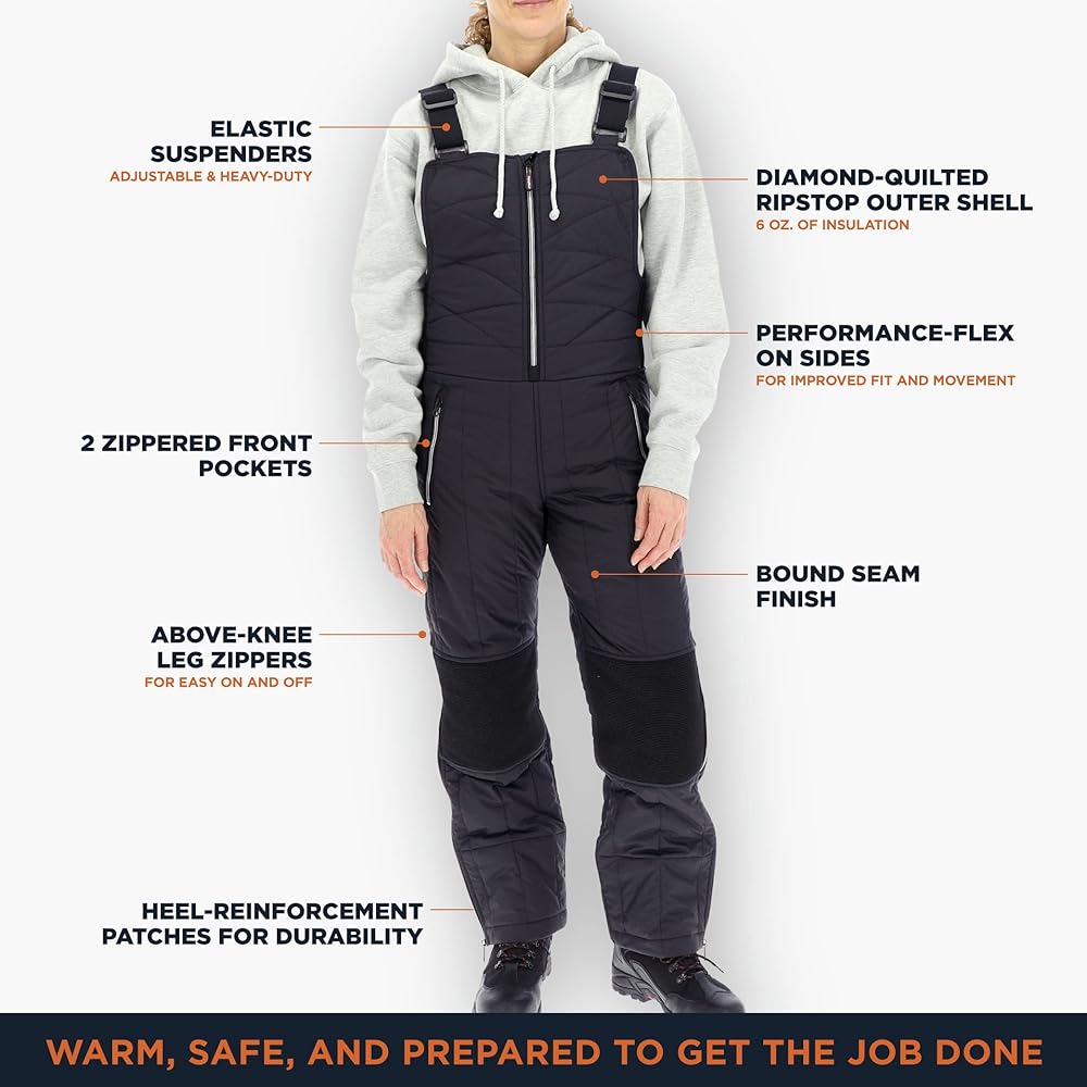 ملابس معزولة: احصل على حماية جدية ودفء في أي ظروف شديدة البرودة مع ملابسنا المعزولة للنساء. ملابس العمل الشاقة لدينا تبقيك مرتاحًا حتى درجة حرارة 20 درجة فهرنهايت (-7 درجة مئوية). تحتوي هذه الملابس الساخنة على 6 أونصات من العزل الذي سيحميك من الطقس المتجمد.
