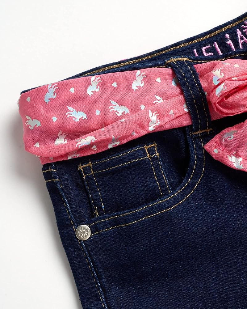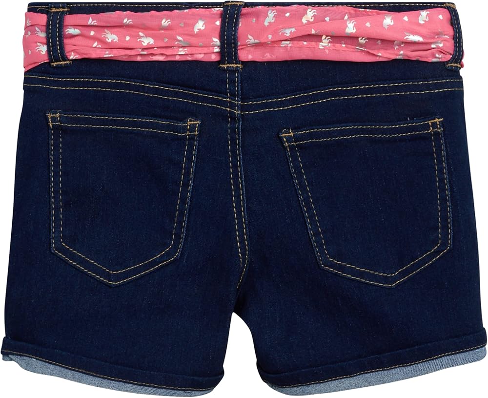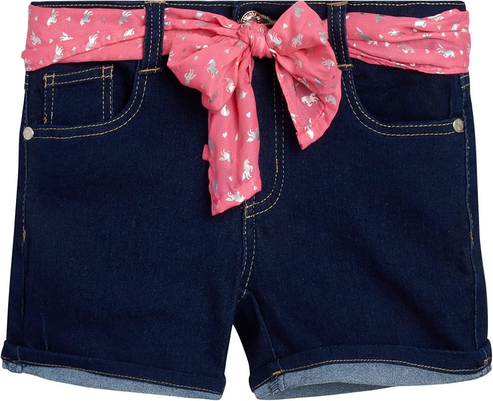 شورت البنات من dELiA*s - شورت جينز من قماش الدنيم المطاطي مع حزام وشاح (7-16)