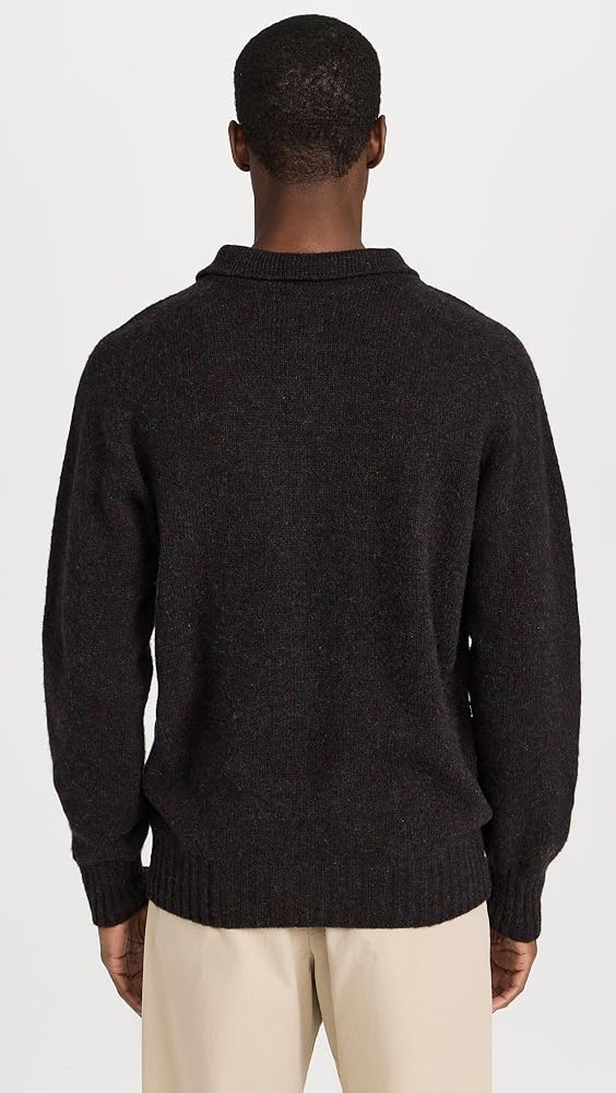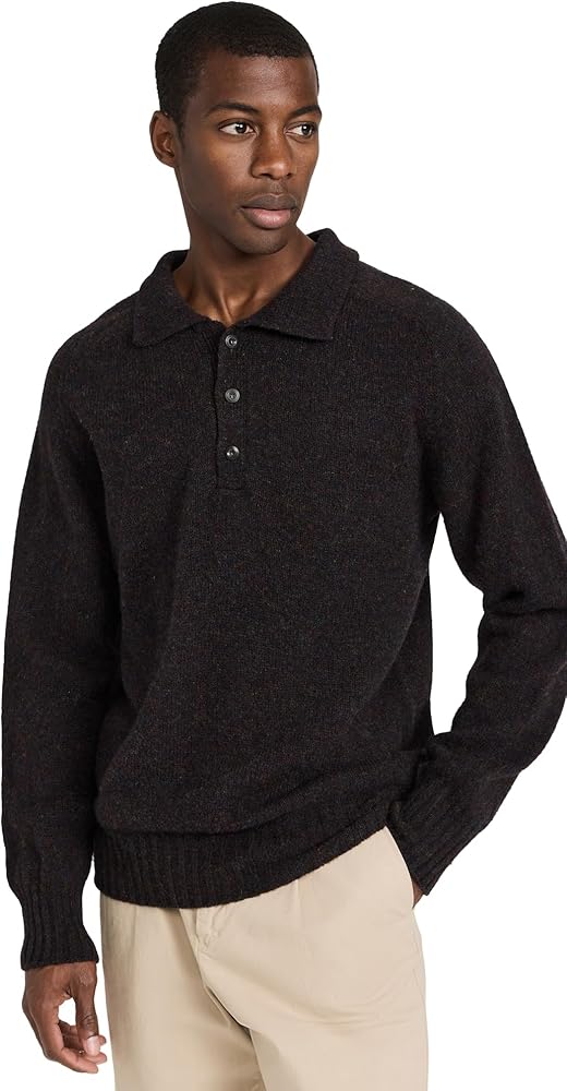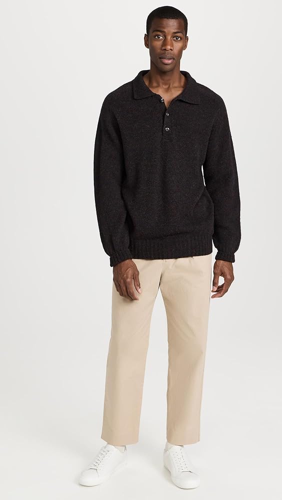 • خط عنق بولو وأكمام طويلة، وحاشية وأساور مضلعة