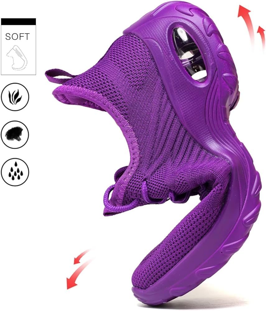 النعل الأوسط الرغوي مع وحدة الهواء يشعر بالنعومة والراحة. يعد التصميم على شكل إسفين مع دعم القوس خيارًا جيدًا للغاية للنساء اللاتي يعانين من آلام القدم. يمكن لأحذيتنا أن توفر الدعم حيث يحتاجون إليه بشدة.