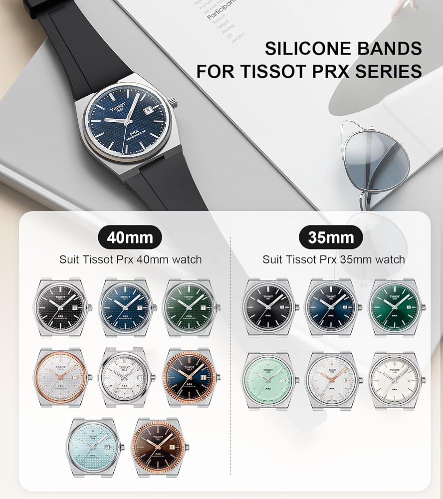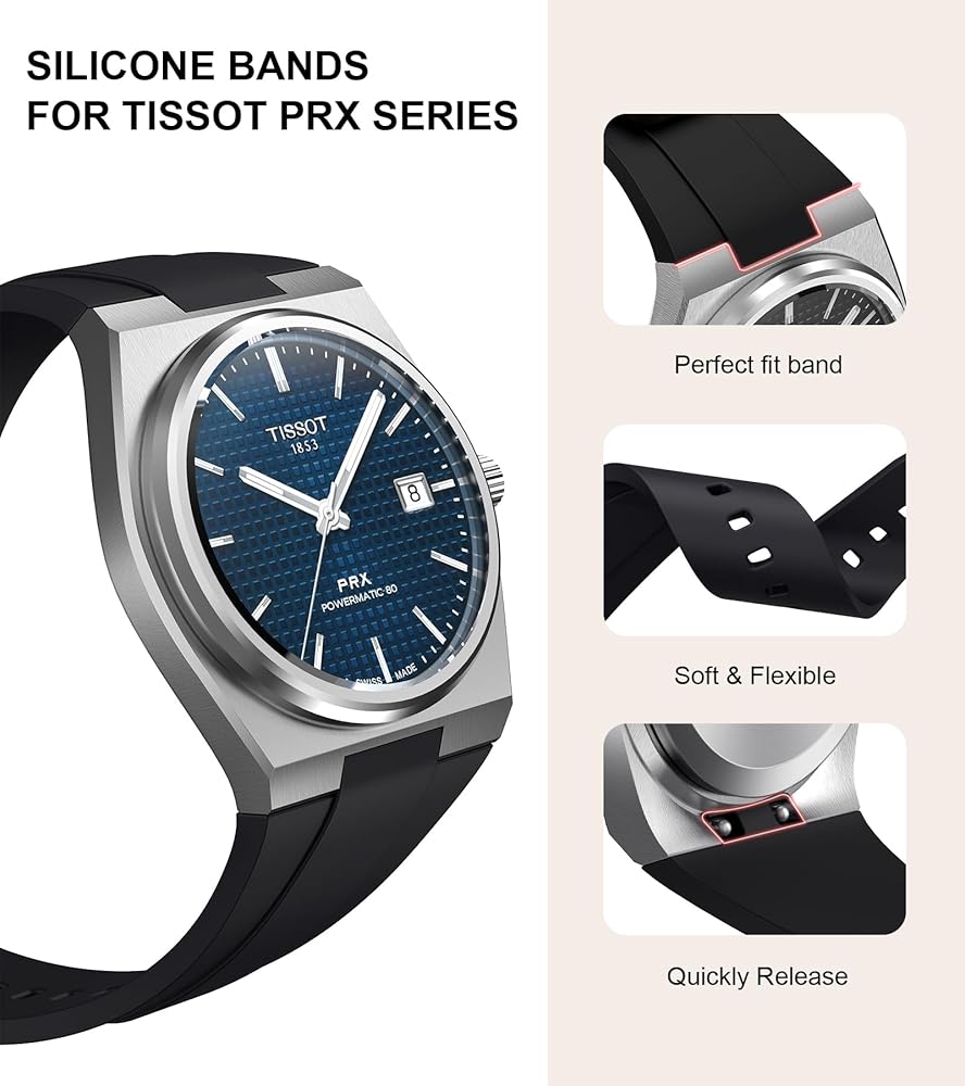 【Uncompromising Quality】Crafted with precision and durability in mind, our Tissot PRX watch bands are made from high-quality liquidity silicone and stainless steel buckle materials. If you desire a silicone band for your Tissot PRX watch, our selection guarantees exceptional quality.
