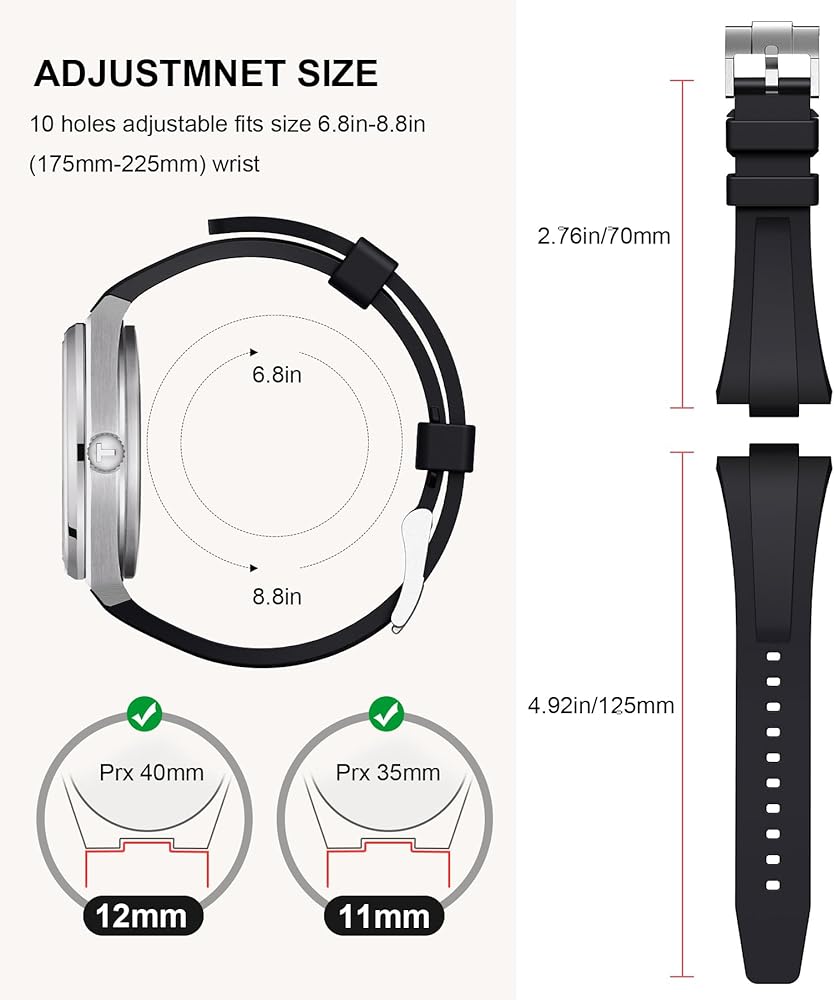 【Elevate Your Tissot PRX Style】Upgrade your Tissot PRX watch with our premium watch bands. Specifically designed for Tissot PRX series powermatic 80 35mm 40mm models,our collection has you covered. The 12mm lug compatibility ensures a perfect fit for your Tissot PRX series.(Note:12mm lug band suit for 40mm watch,11mm lug band suit for 35mm watch,don't suit 42mmTissot PRX watch)