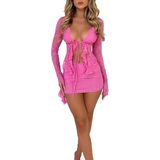 Summer 2 piece skirt set, lace long sleeve crop tops and mini skirt outfits, fashionable and comfortable.