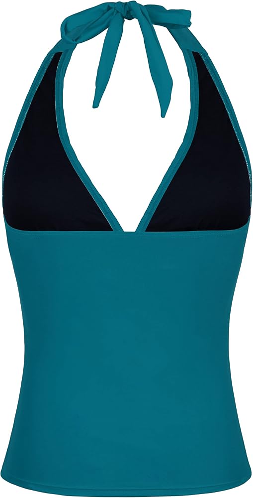 coastal rose Womens Halter Tankini Top Ruffle V Neck Swimwear Top Only Ruched Tummy Control Bathing Suit Top