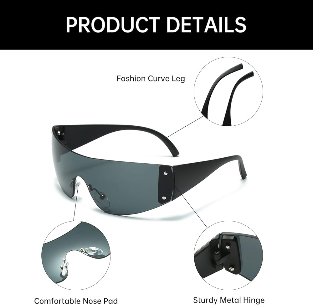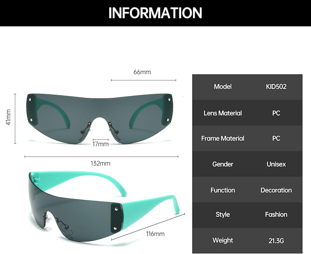 【تصميم مستقبلي Y2K】- هذه النظارات الشمسية Y2K ذات عدسة ضخمة من قطعة واحدة تلتف العين في جميع الاتجاهات، عادة ما تكون مناسبة للأولاد والبنات من سن 6 إلى 12 سنة، ولكن ذلك يعتمد على حجم طفلك، من أجل الحصول على أعلى الدقة، يرجى الرجوع إلى حجم الإطار لدينا.