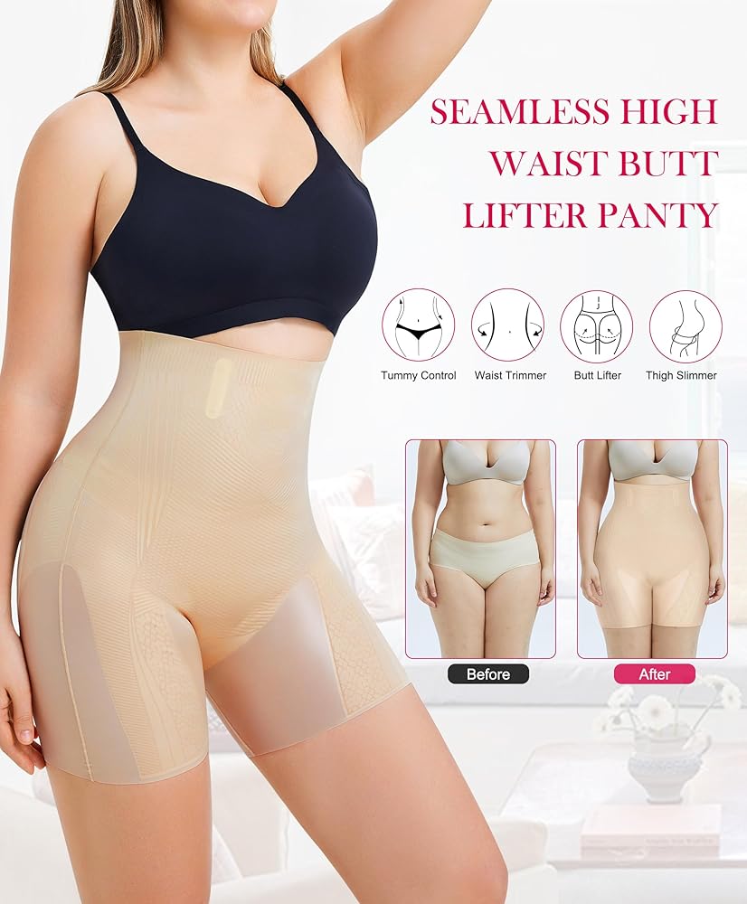 مشكل الجسم للنساء تحت الفستان: تم تصميم الفاجا القصيرة من طبقتين من القماش عند الحاشية لضمان ملاءمة سلسة وغير قابلة للتدحرج. لا يقوم مشد الخصر الخاص بنا بشد الفخذين المترهلين بشكل فعال فحسب، بل يوفر أيضًا الراحة من الاحتكاك الناتج عن الفخذين الأكبر حجمًا. بفضل تأثيره التنحيف، فإن السراويل الضيقة الخاصة بنا تخلق مظهرًا أنحف بشكل عام لفخذيك. ملابس الجسم ذات الخصر العالي والمعززة للنساء غير مرئية تحت أي نوع من الملابس، ولا توجد خطوط داخلية.