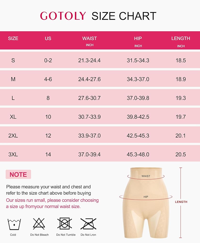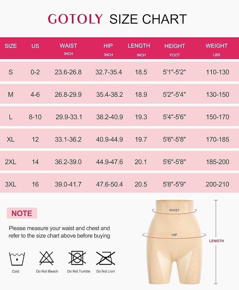دليل مقاسات شورت تدريب الخصر من GOTOLY: يرجى قياس محيط خصرك (1 بوصة فوق السرة) وخط الورك (الجزء الكامل من المؤخرة)، ثم اختر أفضل مقاس لك وفقًا لصورة جدول مقاسات ملابس الجسم ذات الحجم الكبير على اليسار. إذا كانت لديك أي أسئلة بخصوص حزام الخصر، يرجى الاتصال بنا مباشرة، فنحن دائمًا هنا لخدمتك.