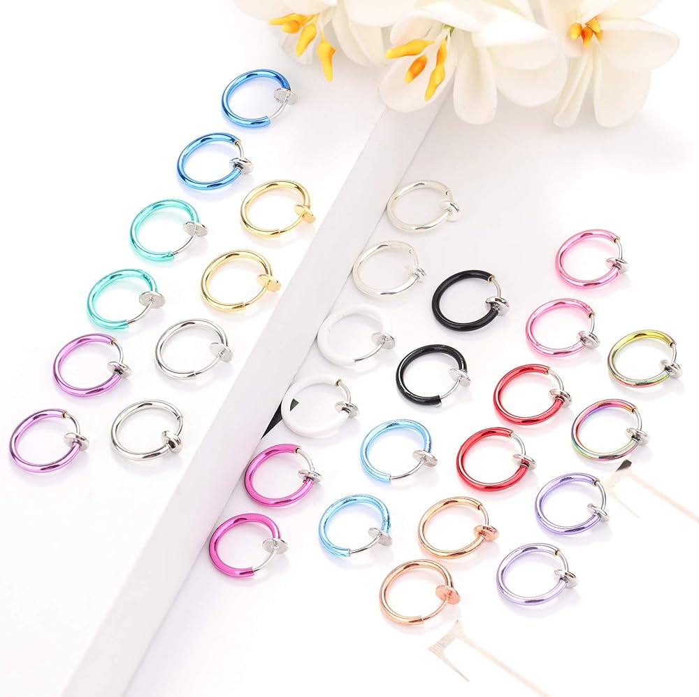 ♥Fake Nose Ring Hoop♥You can get 30 pcs (15 pairs) of stainless steel fake nose ring hoop for women men in one order,15 different colors (silver/gold/black/red/biue/purple/green) to make your daily wear more colorful.You can easily wear it by pulling the spring, and can be used as earrings, nose ring, lip ring, etc.Affordable fake piercing set, you are worth buying.