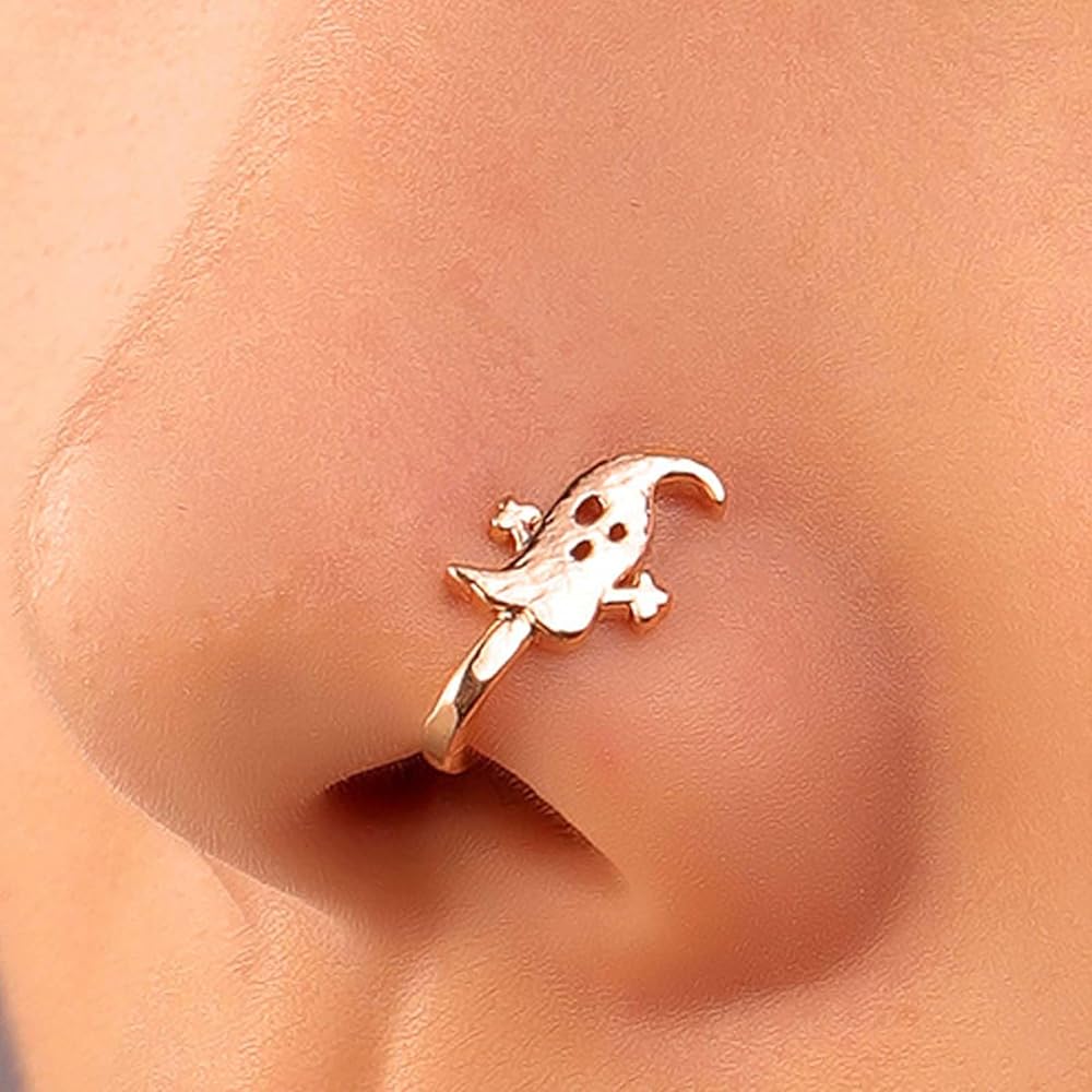 • Gold ghost fake nose ring made of high-quality environmentally friendly alloys and strict metal plating process, the surface is polished and smooth, ,hypoallergenic,won't irritate your skin.