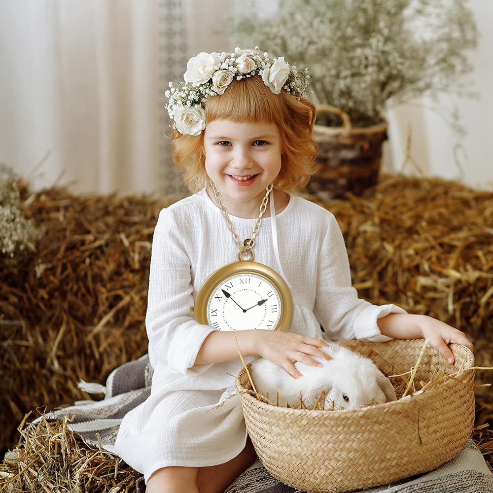 【Wide Application】This jumbo clock necklace is widely used as a prop to add some atmosphere, perfect for Halloween parties, Easter parties, bunny themed parties, birthday parties, school plays, role plays etc. It also makes a great Alice themed party gift.