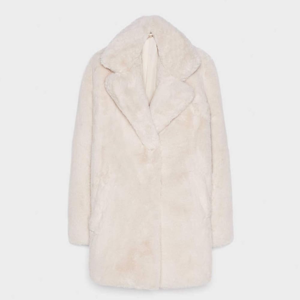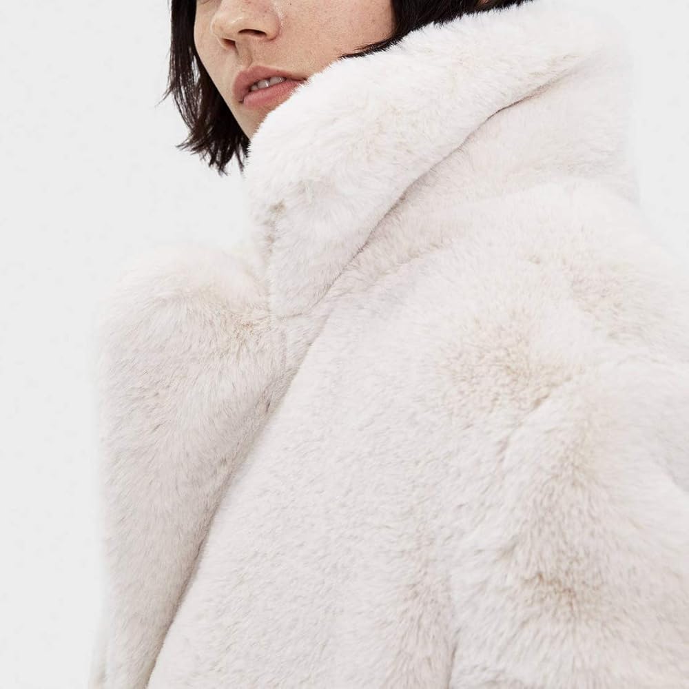 - معطف سترة من مادة سميكة، ملابس خارجية غامقة من فرو الأرنب الصناعي.