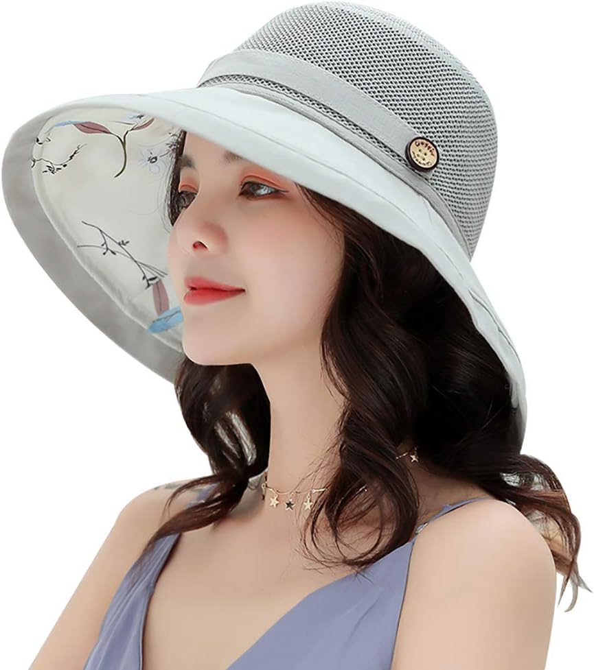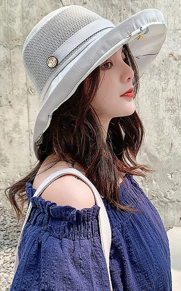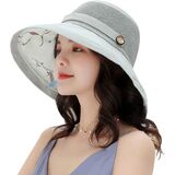 محيط قبعة الشمس ذات الحافة العريضة: 22"-22.8، مقاس واحد يناسب معظم النساء والفتيات. تصميم قابل للطي لسهولة التخزين في حقيبة اليد أو حقيبة الظهر.