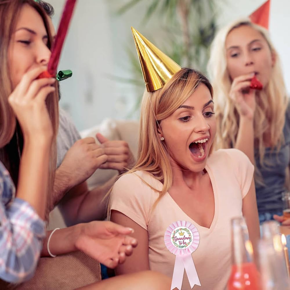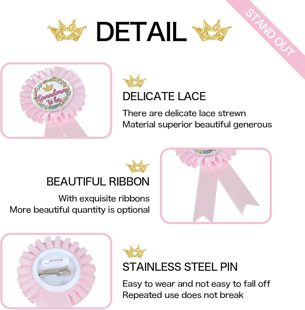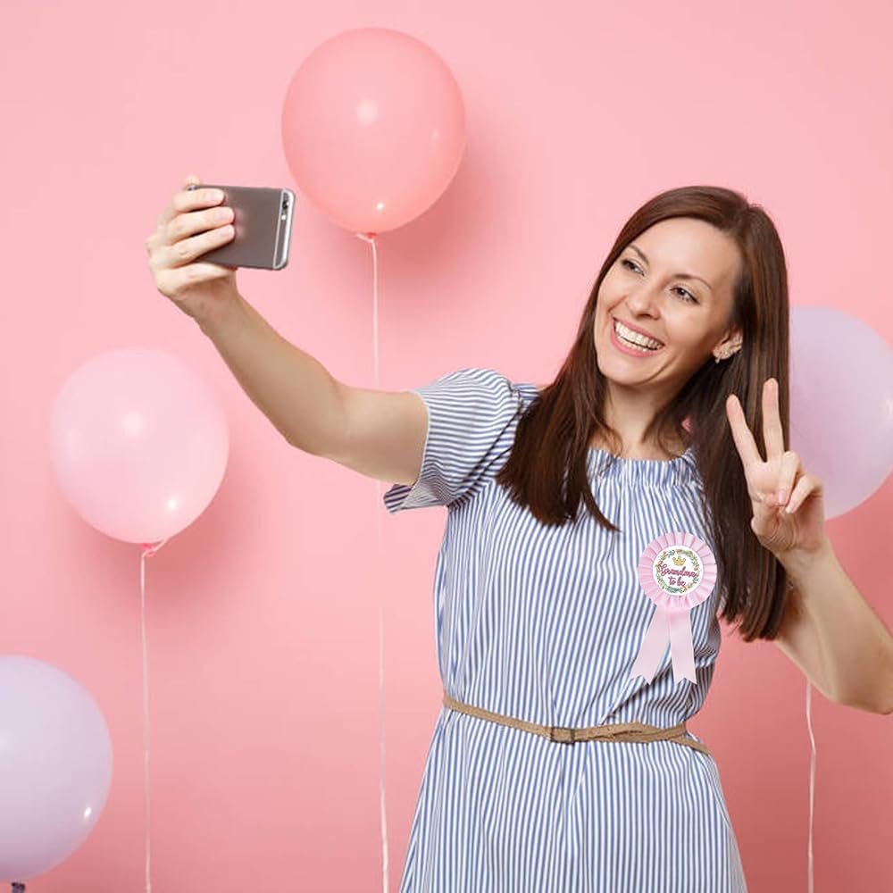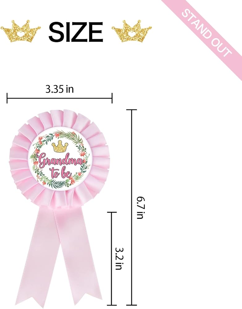 دبوس شارة من نسيج الساتان للجدة إلى أن تكون صفيحة من القصدير، دبابيس أزرار وردية الجدة الجديدة، دبوس زينة حفل استقبال الجدة، وردي اللون، عبوة من 1