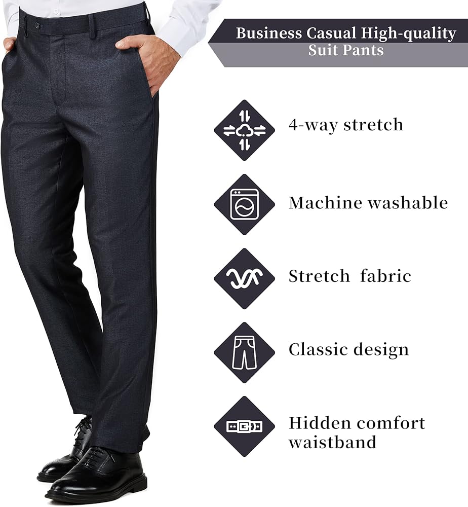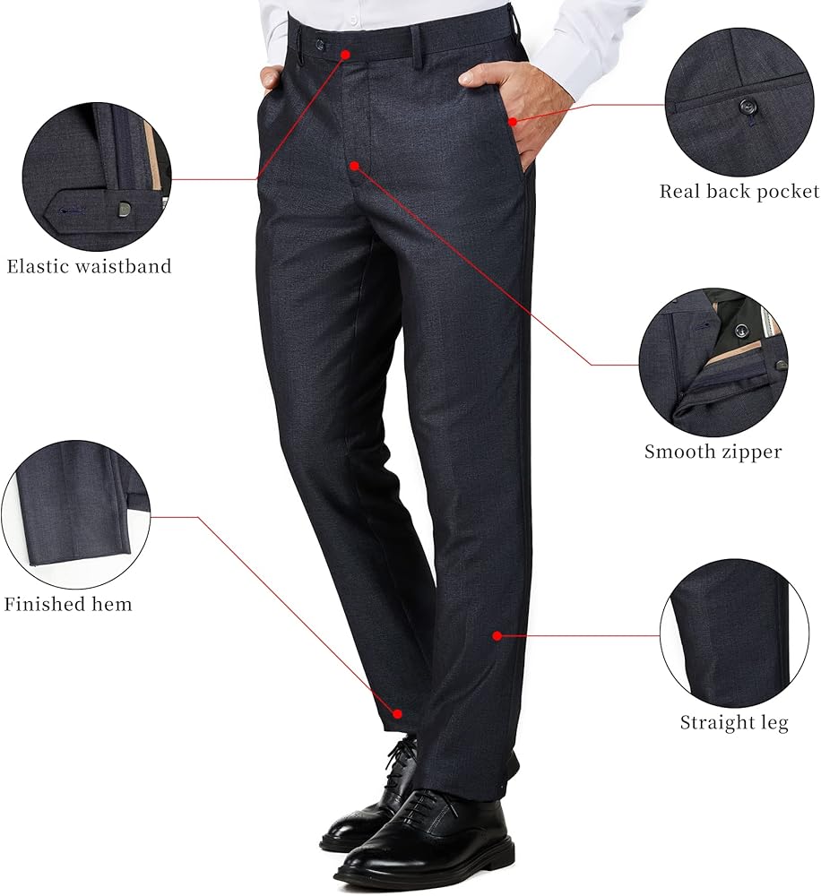 جودة فاخرة - هذه السراويل الرسمية للرجال مصنوعة من مواد مطاطية عالية الجودة بحرفية دقيقة. يبدو القماش ناعمًا وسلسًا ومريحًا عند اللمس وقابل للتنفس ويمتص الرطوبة وخاليًا من التجاعيد ولا يتجعد بسهولة. من الرأس إلى أخمص القدمين، ستجد أن ملابس المناسبات الخاصة هذه ذات جودة عالية تمامًا كما ترى في صورنا. بمجرد تجربة هذا البنطلون المذهل، سوف تحب التصميم الجذاب والأسلوب العصري الذي سيدوم لسنوات.