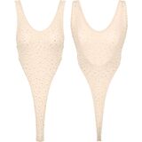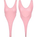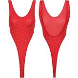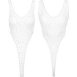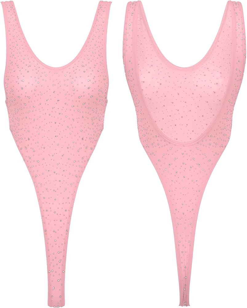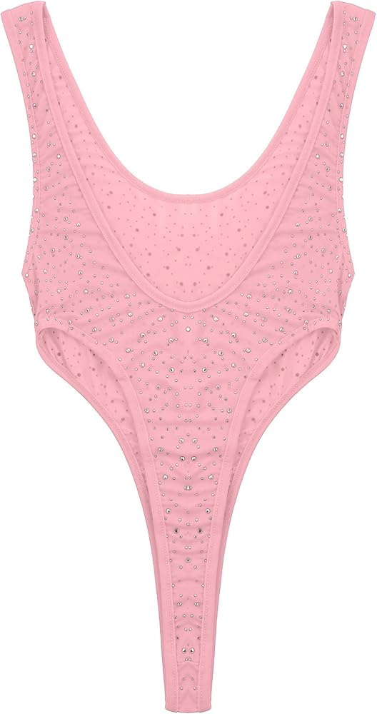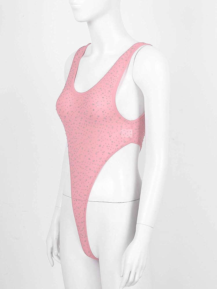 • Scoop neck, sleeveless, high cut, rhinestone decor, shiny and attractive