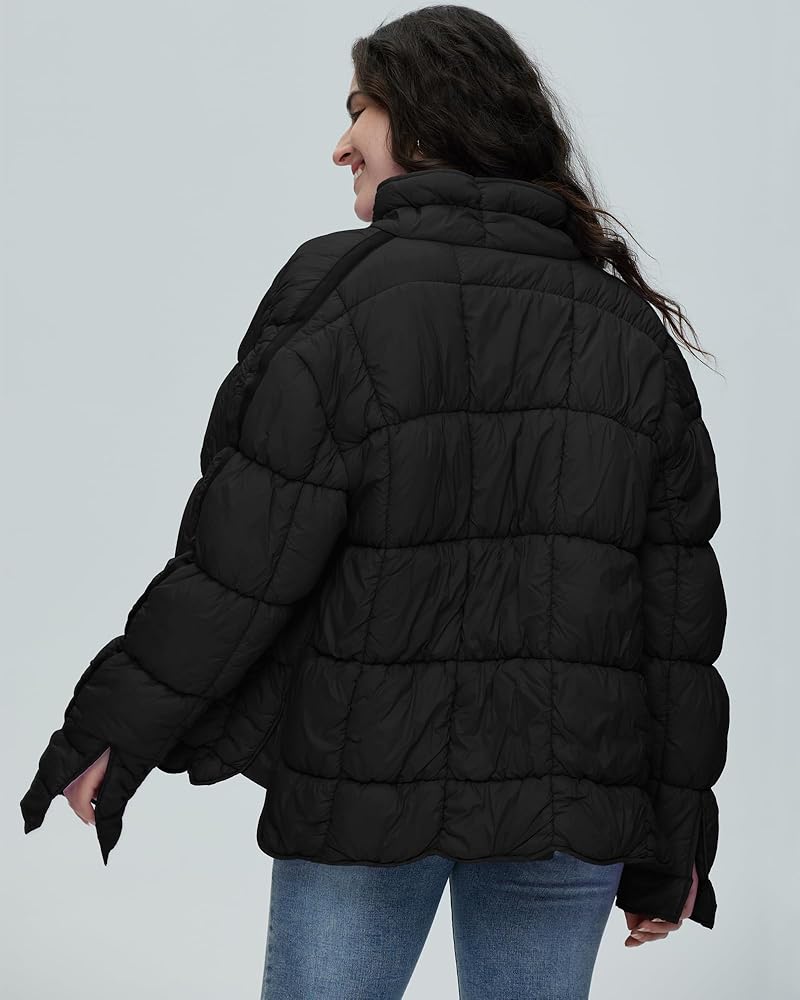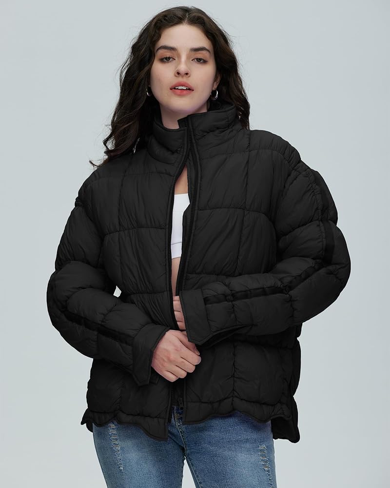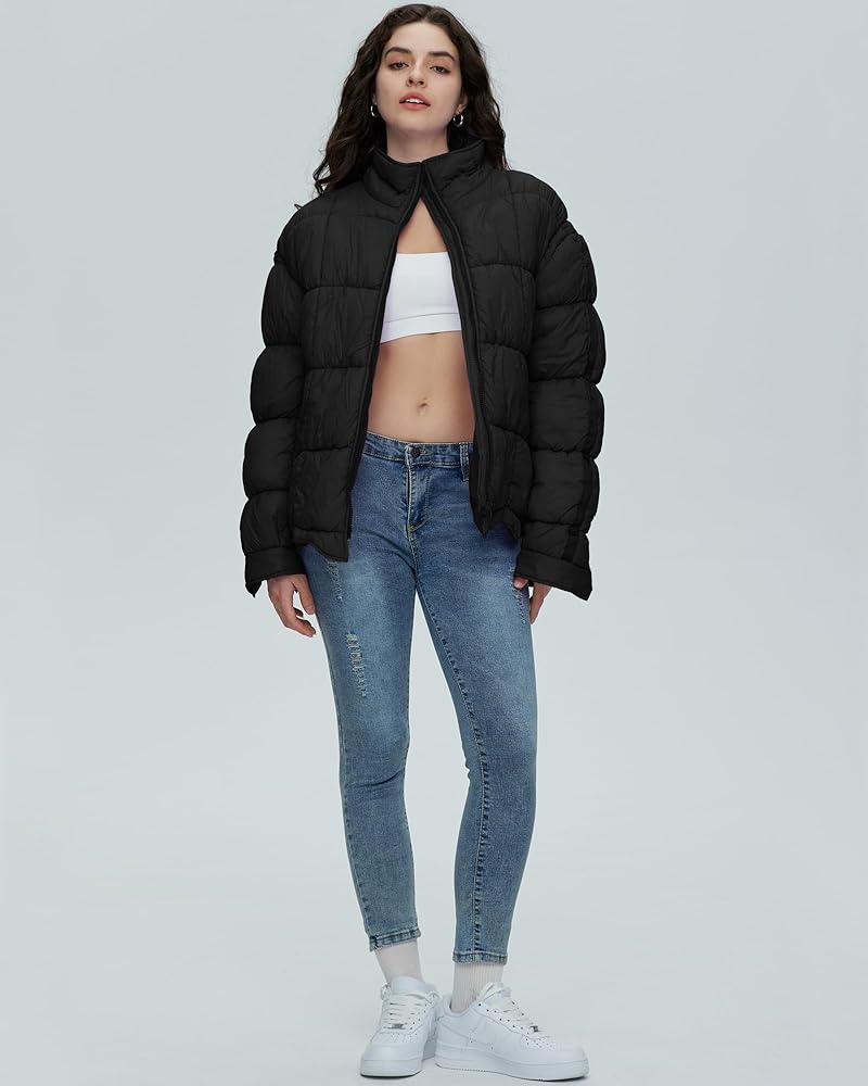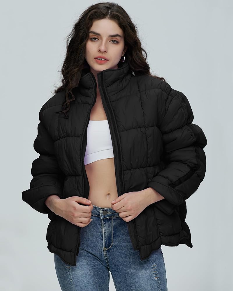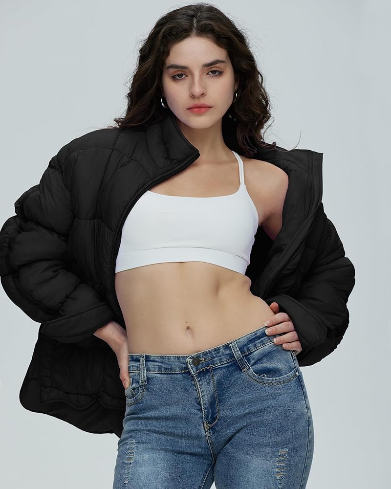 سترة نسائية منتفخة مبطنة من Gacaky، معطف مبطن خفيف الوزن بسحاب مع جيوب