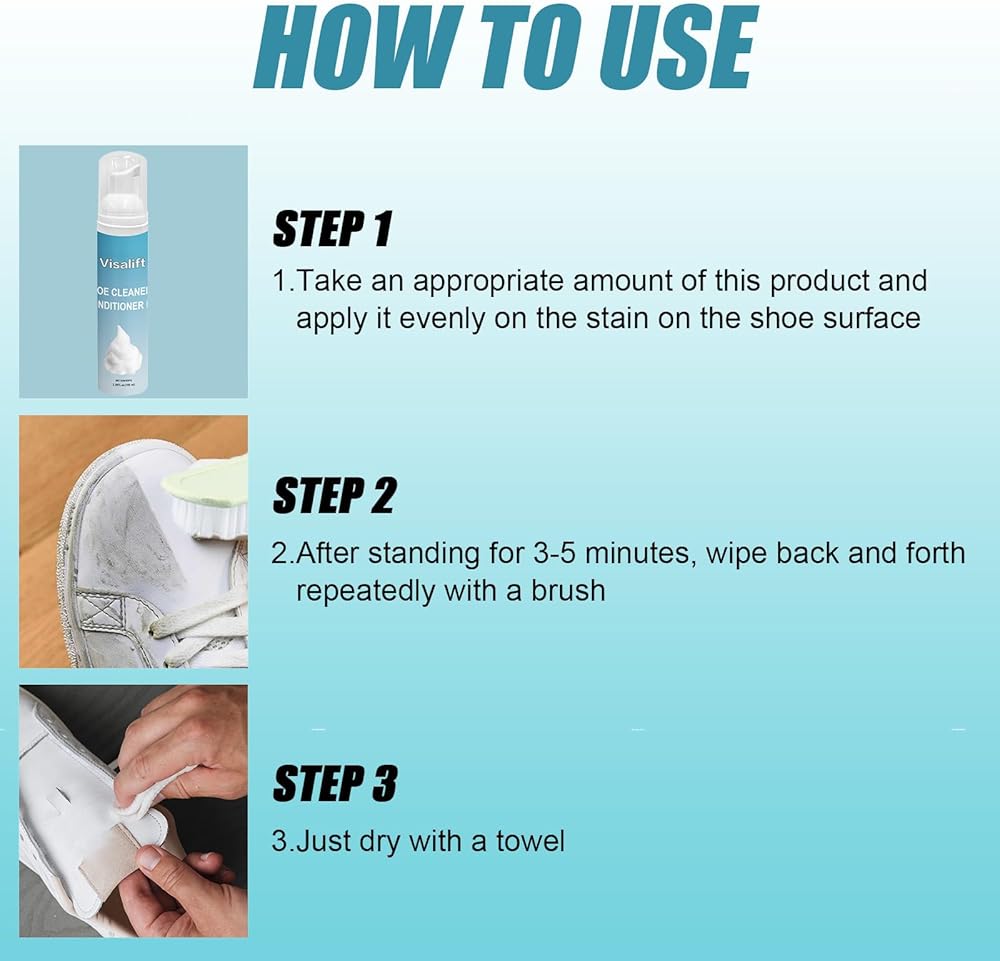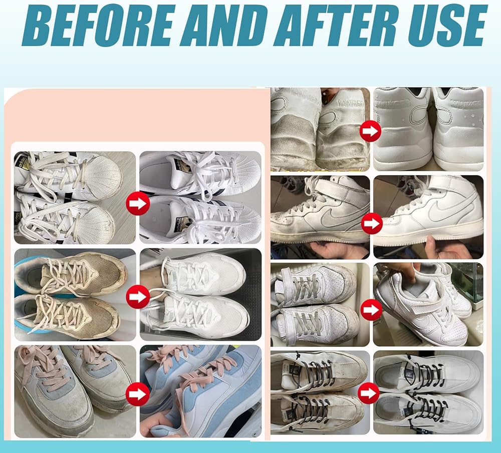 【استخدام واسع النطاق】منظف الأحذية، يمكن استخدامه لإزالة الاصفرار والتشوه والأوساخ من جميع أنواع الأحذية، مثل أحذية التنس الكاجوال والأحذية الرياضية والأحذية الكاجوال والأحذية الطويلة وما إلى ذلك.