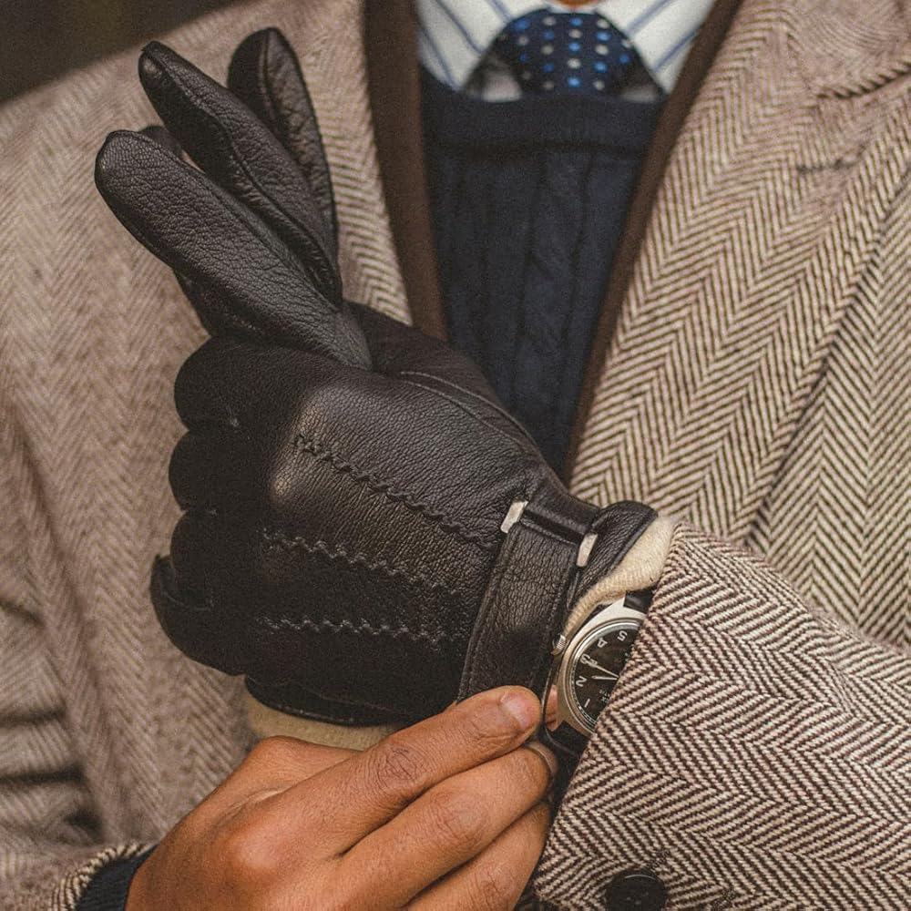 أفضل قفازات شتوية للرجال وبطانة من الكشمير: مصنوعة من الكشمير الخالص بنسبة 100%. الكشمير عبارة عن ألياف طبيعية جميلة من شعر الماعز الجبلي، وهي ناعمة للغاية ودافئة وخفيفة الوزن. تحافظ بطانة القفازات الجلدية الشتوية للرجال على دفء يديك وراحتهما للغاية أثناء الطقس البارد.
