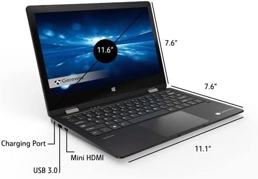 أحدث كمبيوتر محمول قابل للتحويل بشاشة لمس 11.6 بوصة HD 2 في 1 باللون الأسود Intel N4020 وذاكرة وصول عشوائي 4 جيجابايت وذاكرة وصول عشوائي 64 جيجابايت SSD وكاميرا ويب Mini-HDMI Hugo Tech Mart Windows 10 S