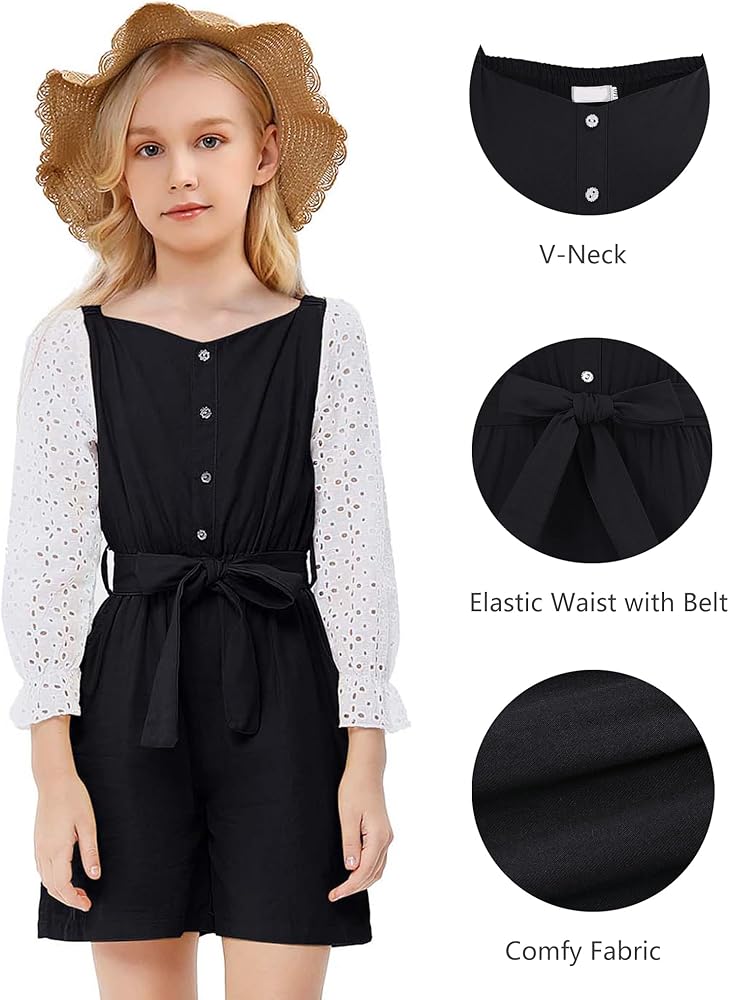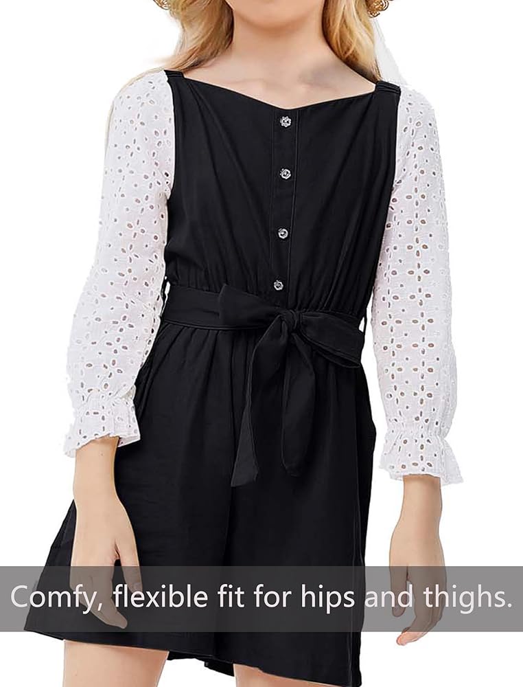 تصميم خاص: أكمام مجوفة 3/4، خصر مرتفع مع حزام، أزرار أمامية، لون سادة، جمبسوت كاجوال مع غطاء للرأس، يوفر رومبر الفتيات لدينا ملاءمة أنيقة مرتبطة بالراحة والعملية.
