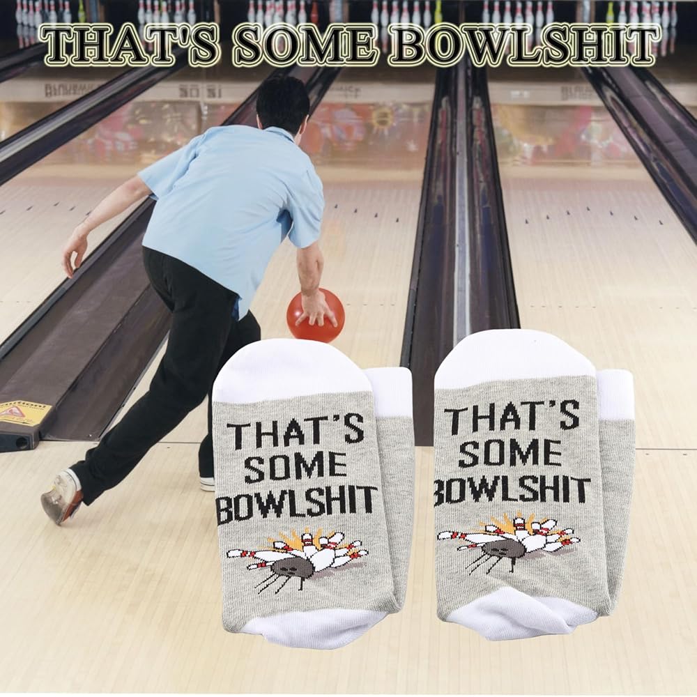 • Socks with Knitting Words: THAT'S SOME BOWLSHIT. Great bowling ball themed gift idea for bowling lovers, bowler gifts, bowling enthusiast gifts, bowling teams.