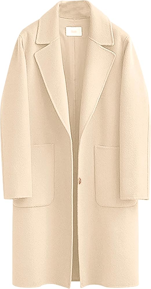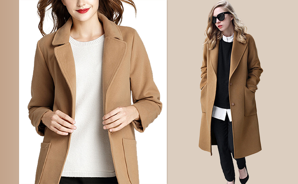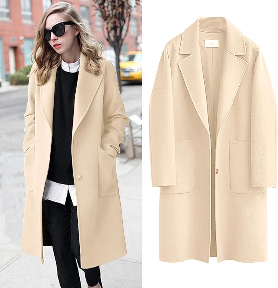 - معطف طويل بأكمام طويلة وأزرار من مزيج الصوف للنساء مع جيوب لليد، مناسب للارتداء الكاجوال والعمل واجتماعات العمل والمقهى وعطلة نهاية الأسبوع