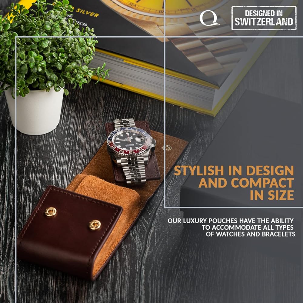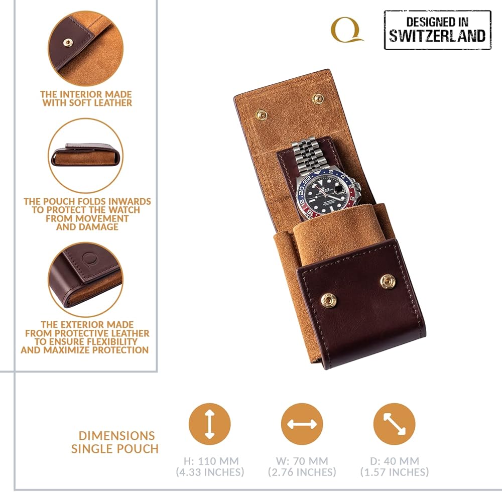 الهدية المثالية لعشاق الساعات - تعتبر حقائب Qwatch هدية رائعة لشخص الساعة في حياتك. تأتي كل حقيبة ساعة مقدمة بشكل جميل في صندوق أسود غير لامع يحمي الحافظة الجلدية الطبيعية الجميلة المحببة بالكامل.