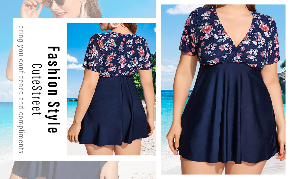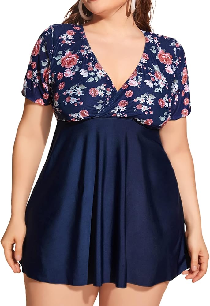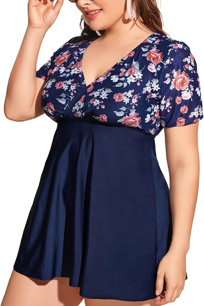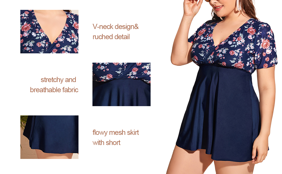 ملابس السباحة المكونة من قطعتين: خط العنق العميق على شكل حرف V يظهر انقسامك بشكل مناسب مما يجعلك تشعر بالثقة تجاه نفسك. يمكن للتصميم قصير الأكمام أن يغطي عيوب ذراعيك. سواء كنت تسبح في حمام السباحة أو تتنزه على الشاطئ، فإن بدلة السباحة الجذابة ذات الحجم الكبير هذه ستجعلك تبدو بأفضل مظهر وتشعر بأفضل ما لديك.