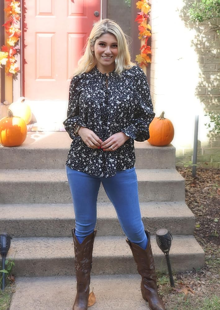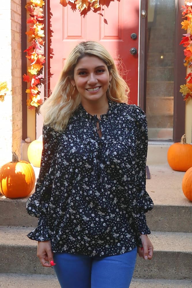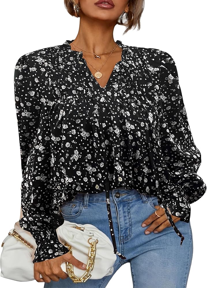 • قمصان Boho Dress Tops - قمصان بوهيمية طويلة الأكمام مع طباعة فورية فريدة من نوعها، وطبعة زهور شاملة تضفي إحساسًا جديدًا على هذه البلوزة الطويلة الأنيقة. تم تصميمه بقصة مريحة وسهلة، مع ربطة عنق وكشكشة رقيقة عند خط الرقبة. تضيف الأصفاد المجمعة حجمًا رقيقًا إلى الأكمام الطويلة للحصول على لمسة نهائية منتفخة.