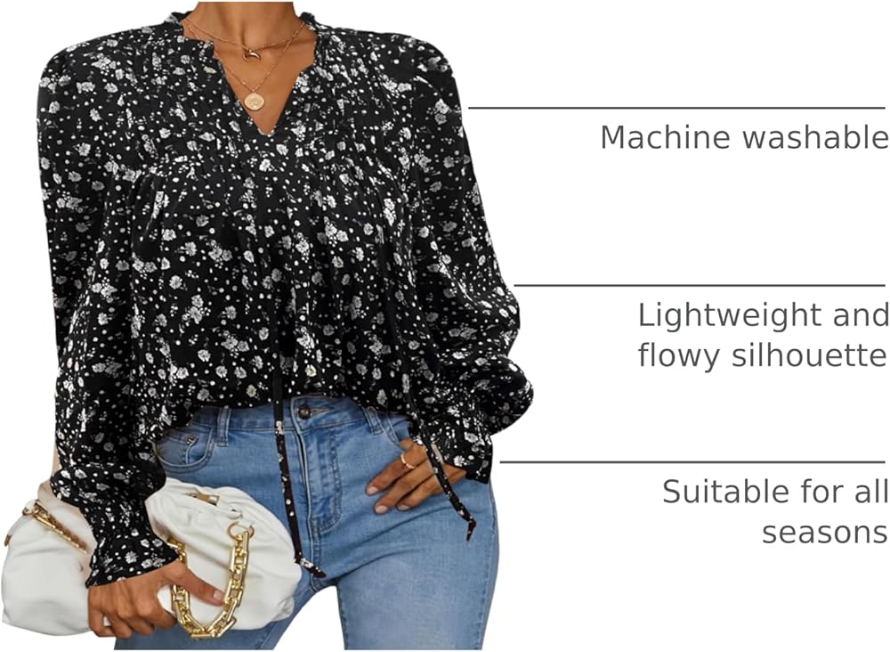 • بلوزات زهرية أنيقة - مصنوعة من البوليستر بنسبة 100٪، فضفاضة، صورة ظلية خفيفة الوزن وانسيابية، بلوزات بوهو عصرية لأزياء النساء 2023. مناسبة للصيف والربيع والخريف والشتاء