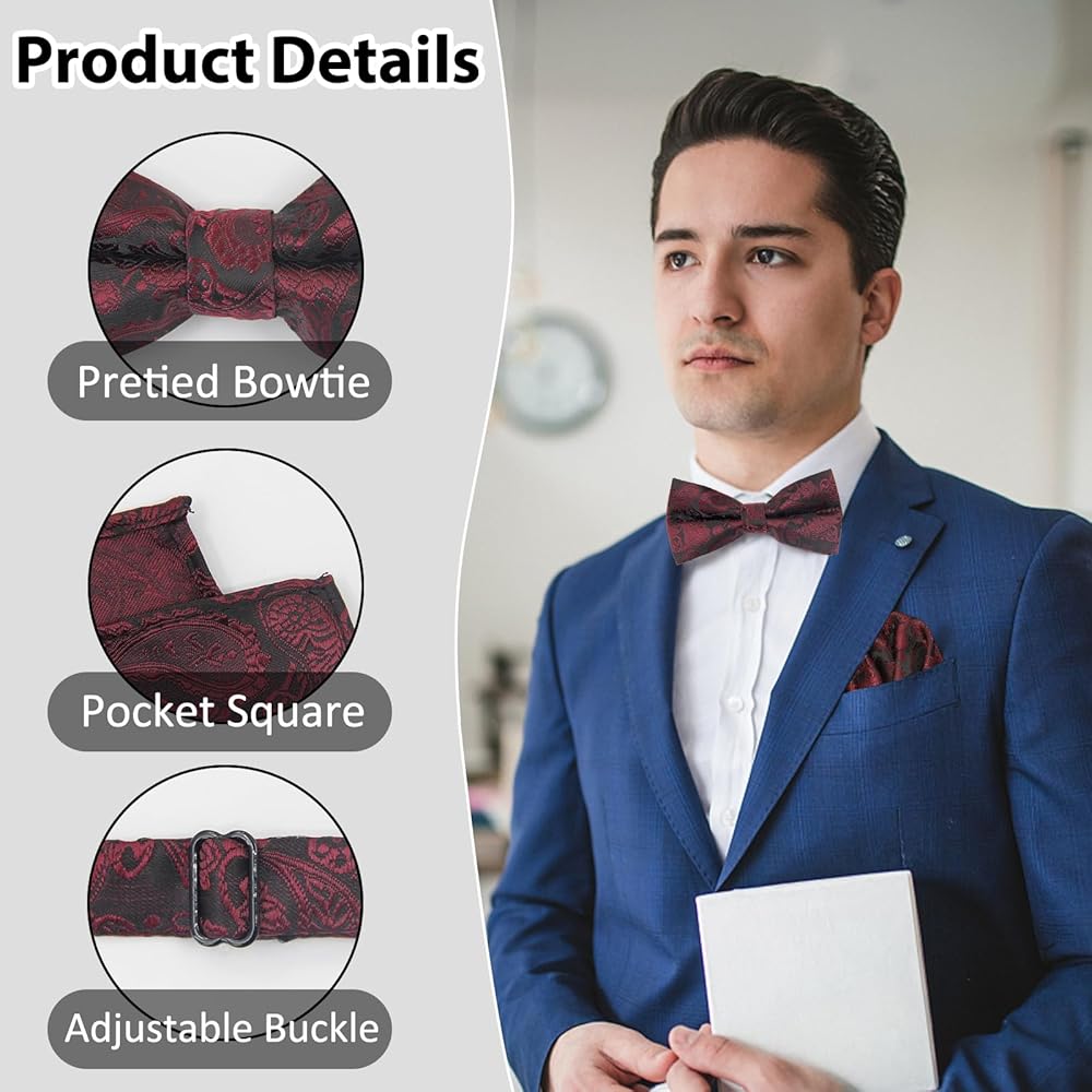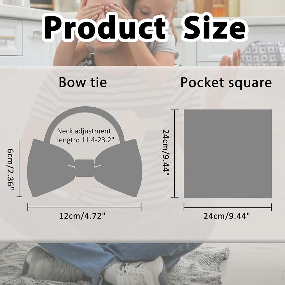 【ربطة عنق مربوطة مسبقًا قابلة للتعديل】مقاس ربطة العنق السوداء هو 2.76*4.72 بوصة، ويمكن تعديل حزام الرقبة من 9.8 بوصة إلى 17.7 بوصة، وهي مناسبة لمعظم الرجال والأولاد الكبار. مقاس الجيب المربع 8.3*8.3 بوصة. ربطة العنق المربوطة مسبقًا سهلة الارتداء ولن تتفكك، حتى لو كنت مشغولًا، ستتمكن من الظهور بمظهر حاد وأنيق.