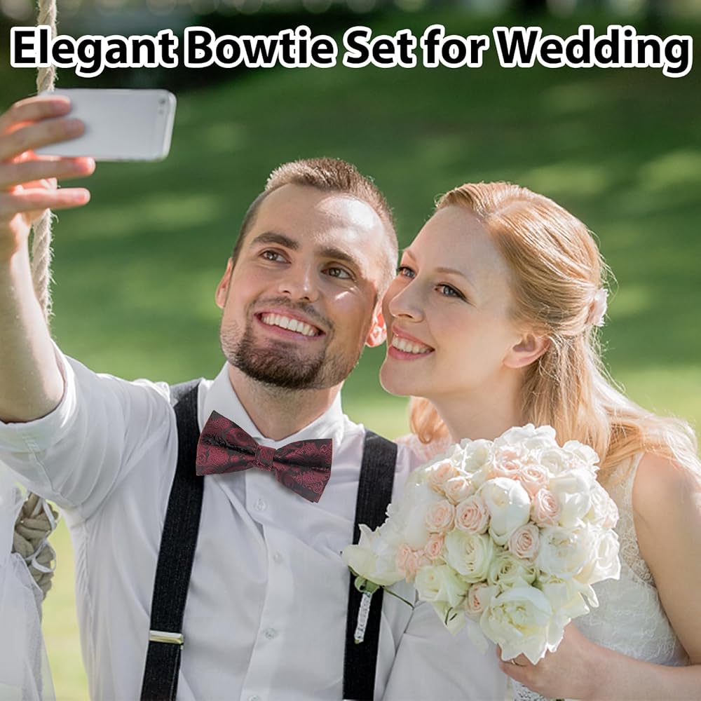 【مجموعة ربطات عنق يجب اقتناؤها للرجال】تأتي ربطة العنق السوداء المربوطة مسبقًا بألوان كلاسيكية مثل الأسود/الأحمر/الأخضر/الأرجواني/الأزرق وما إلى ذلك، مع منديل اللون نفسه وأزرار الأكمام تجعل البدلة لم تعد مملة. هدية مثالية للأب/الابن/الزوج/العريس.