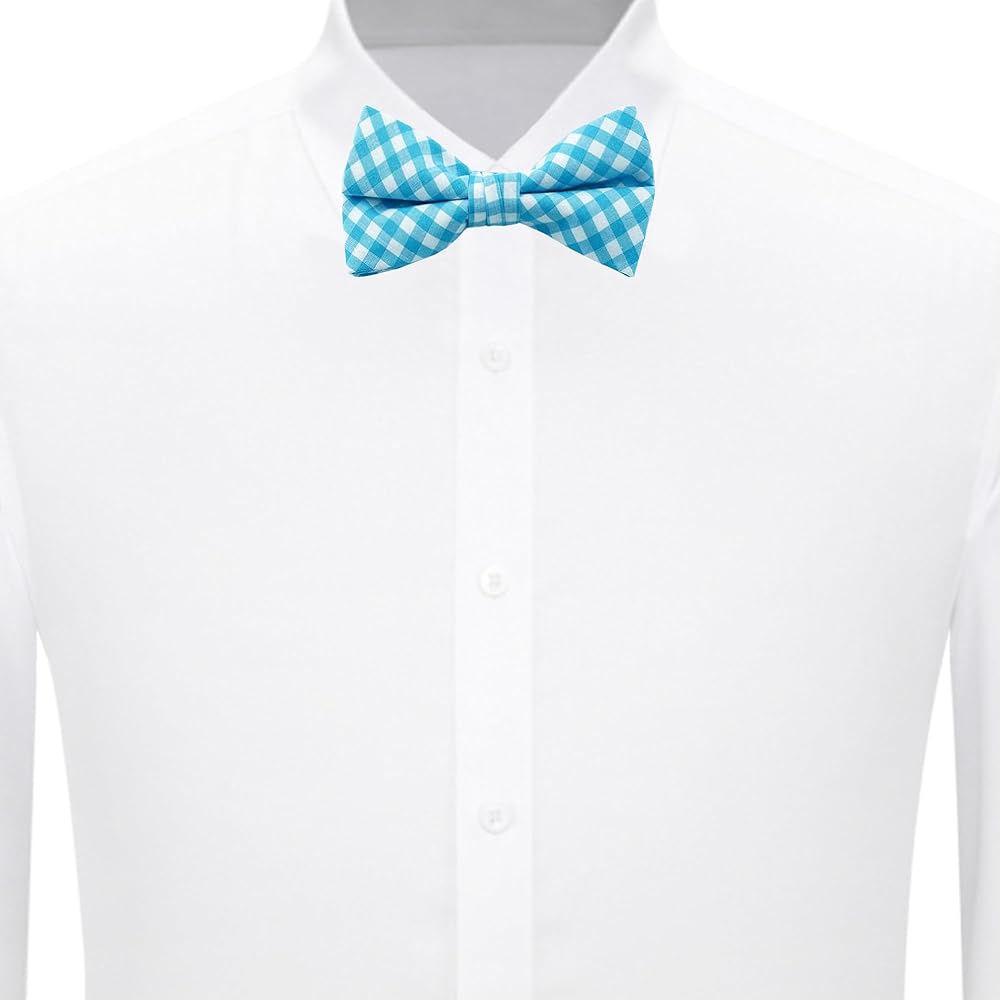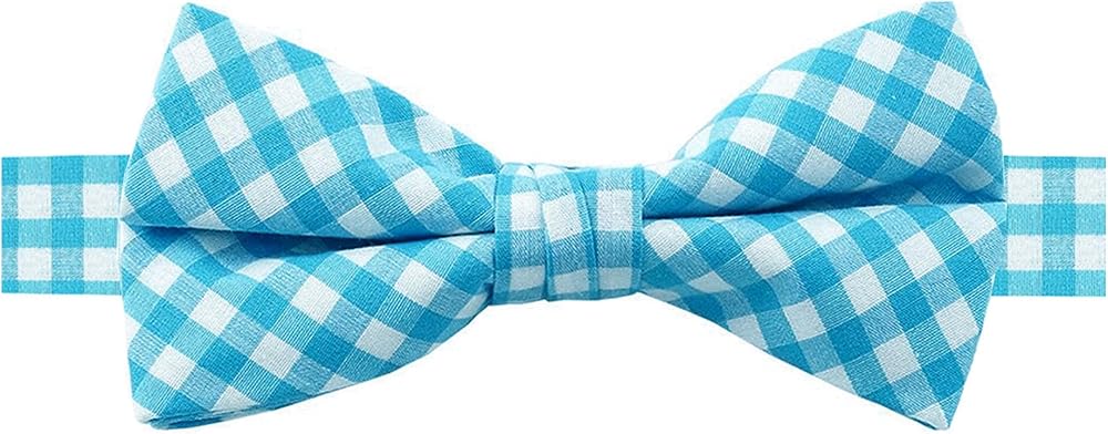 - ربطة عنق رجالية مربوطة مسبقًا بنمط مربعات من القماش القطني مصنوعة بنسبة 100% من القطن.