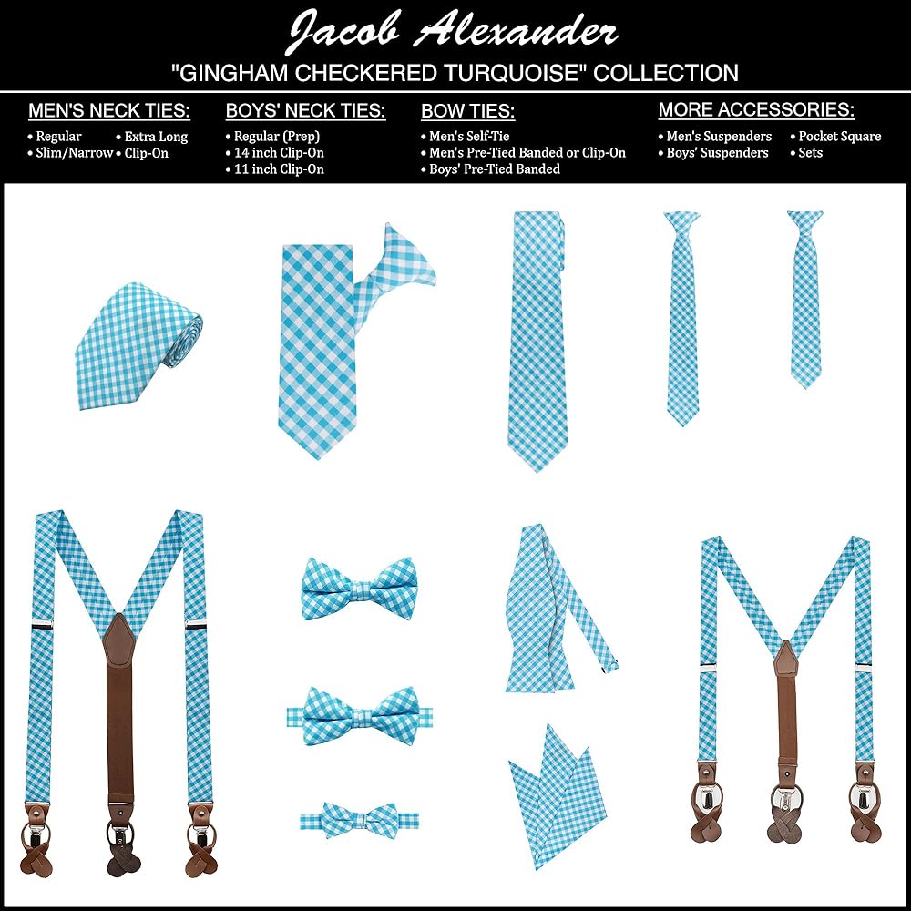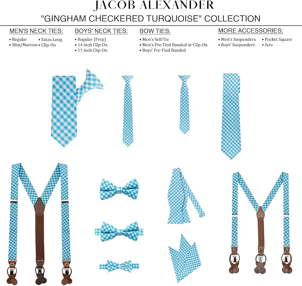 - جزء من مجموعة جاكوب ألكسندر جينجهام التي تتكون من ربطات عنق متطابقة، وربطات عنق على شكل فيونكة، ومربعات جيب، وحمالات، بمقاسات الرجال والأولاد.