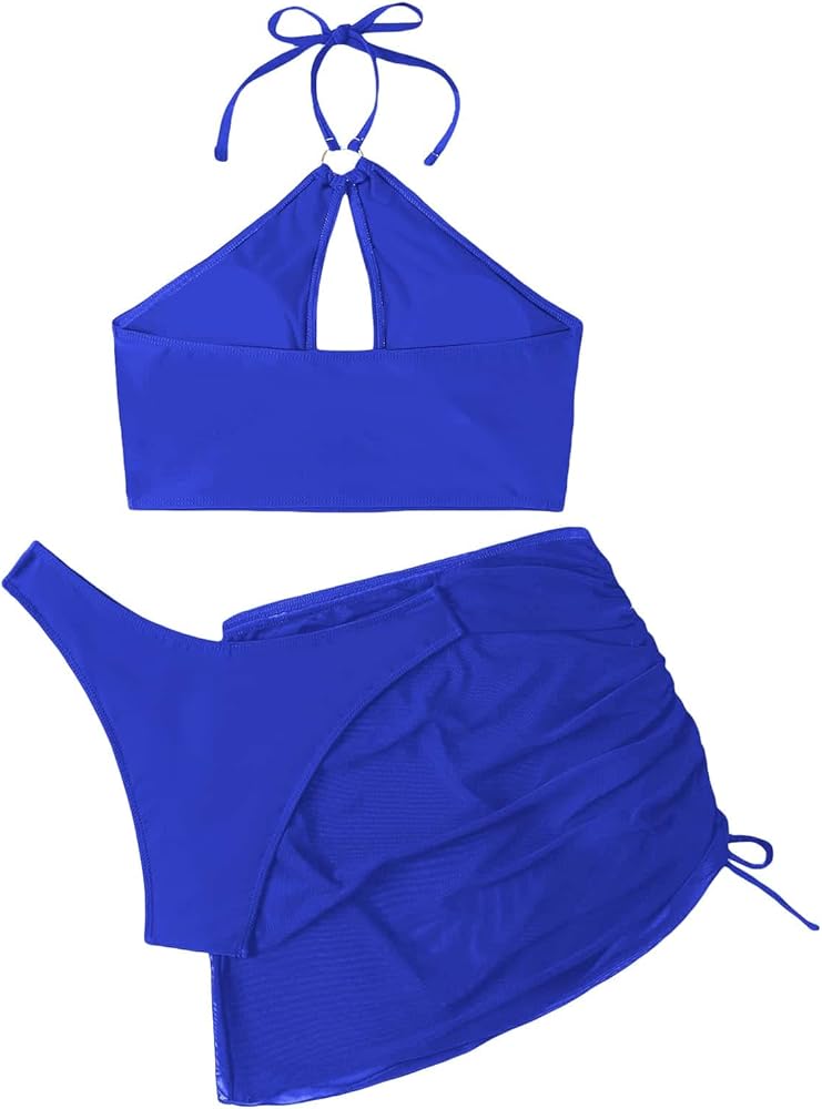 - Feature: halter, cut out, hollow out, high cut, drawstring, beach cover up skirt, sexy bikini set bathing suit, 3 piece swimsuits for women