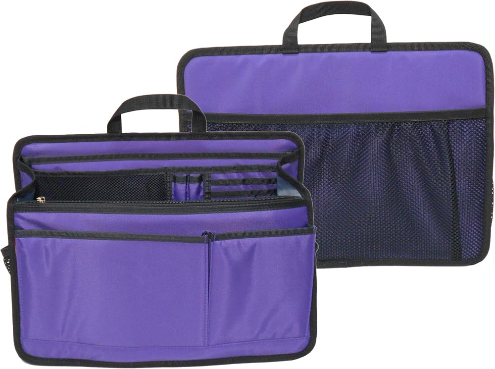Features: - The Briefcase Insert Organizer is made for duty organizing for casual / fashion briefcase or Shoulder Bag. - You will never need to dig for your items again with the organizer. - There is one big open compartment with gusset. Inside, there are card slots, pen holders, small wall pockets, one padded iPad slot and one zippered pocket. They can be used for documents, day planner, small gadgets. etc. - Two mesh pockets on the sides, two front pockets and one rear slip mesh pocket can be used for storing keys, earphones, or any other items that needs to be readily available. Specifications: - Item no: BA83 - Main Material: 420D Oxford Nylon - Weight: 0.52kg(1.1lbs) - Color: Navy, Deep Yellow, Blue, Purple, Multi Colors, Gray - Dimensions: H 28cm(11") X W 38cm(15") X Depth 12cm(4.7") ** Please note that maybe there has color difference between the photos and actual product. Manufacturing Partner: Deltamann Ltd. Hong Kong