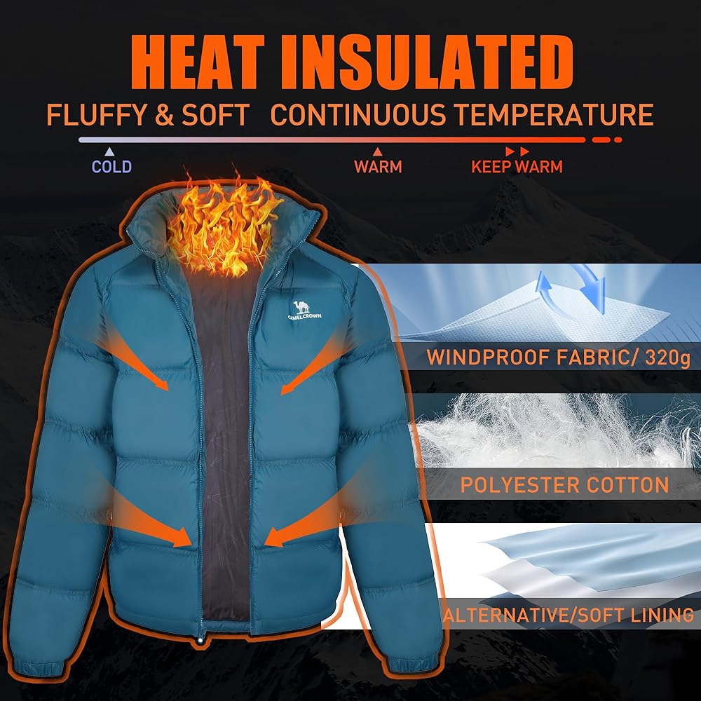 • 【تصميم فريد】مصنوع من 20D 4 قطع من نسيج النايلون المخملي الماسي المضاد للمخمل المقاوم للرياح والماء، مظهرنا الأنيق السميك والسترات المنتفخة خفيفة الوزن مثالية أثناء التنقل في الطقس البارد - مثالية للجلب في الرحلات والتنقلات. ليس هناك شعور بالظلم عند ارتداء المعاطف الشتوية الرجالية على الجسم.