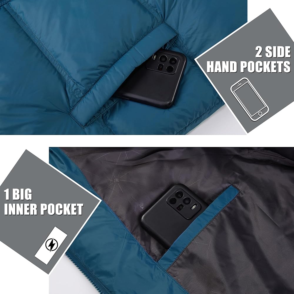 • 【ملابس كاجوال】 نسيج نايلون مسامي مع حشو بوليستر دافئ من أجل خفة الوزن والراحة ويسمح لك بالتحرك دون حجم كبير. يمكن تصميم السترات المنتفخة الرجالية حسب حاجتك! ارتديه مع مظهر أحادي اللون وحذاء رياضي للحصول على مظهر مثالي في عطلة نهاية الأسبوع.